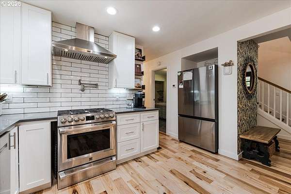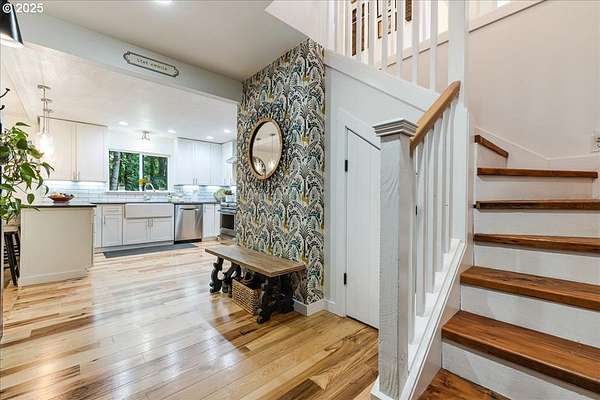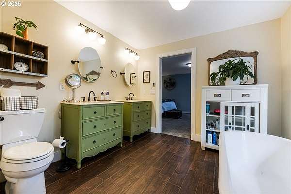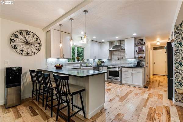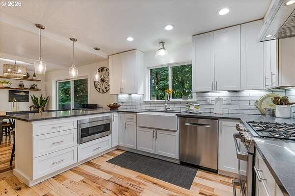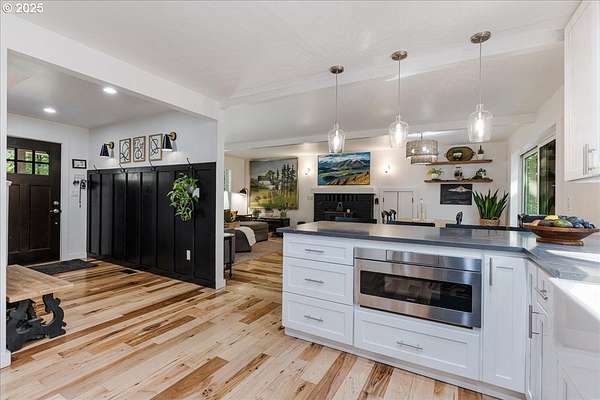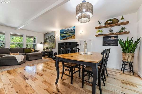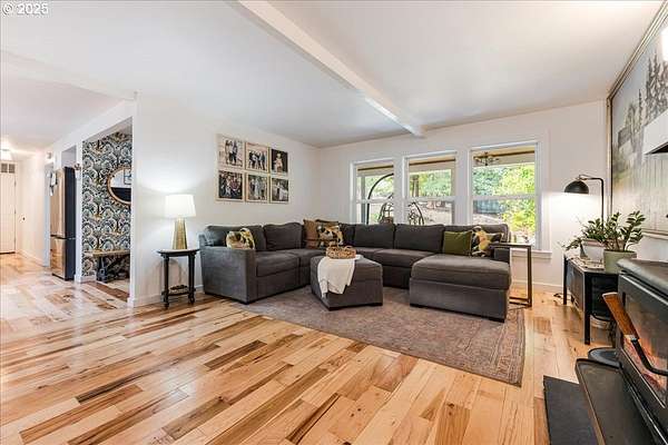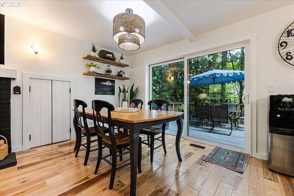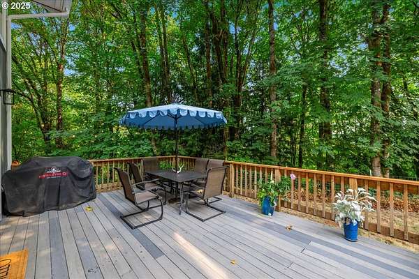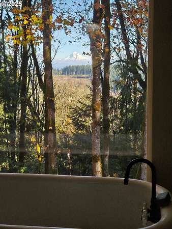 Charming and fully remodeled farmhouse on 1.92 private acres! Stunning Mt. Hood views off the back deck, kitchen, primary bedroom and from the primary bathroom. This 4-bedroom, 2-bath home blends modern comfort with timeless character. The main level showcases gorgeous hickory hardwood floors, while the upstairs offers brand-new carpet for cozy comfort. Light-filled living spaces flow into a gourmet kitchen with new appliances, custom cabinetry, quartz countertops, a pot filler over the range and stylish finishes. The spacious primary suite is a true retreat with a huge walk-in closet, the primary bath has heated tile floors, duel sinks, a stunning Mt Hood view from the luxurious clawfoot soaking tub, and walk-in tiled shower. Recent updates include a newer roof, updated furnace, and quality finishes throughout, offering peace of mind and move-in readiness. Outdoor living is just as inviting with a welcoming covered front porch featuring a cedar ceiling, a Trex deck off the back, and a firepit perfect for gatherings. The property is fenced and cross-fenced, offering ideal space for animals. A small barn provides room for chickens, goats, or hobbies, while the large garden area allows you to grow your own produce. Surrounded by trees and privacy, this property offers the perfect blend of comfort, charm, and country living. All within 10 minutes of downtown Oregon City.