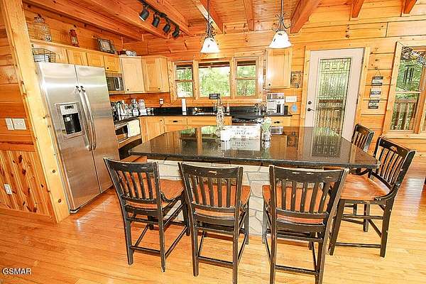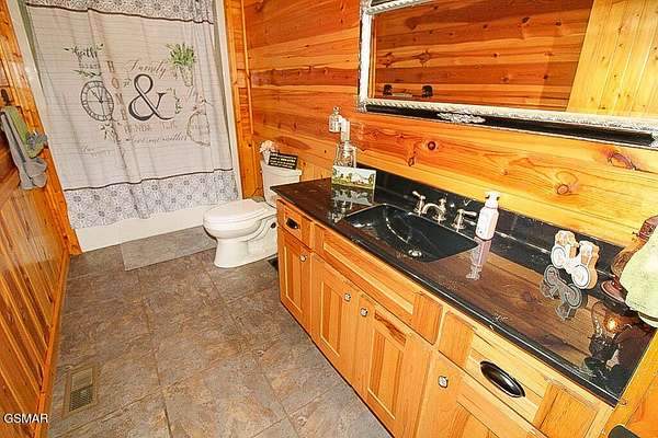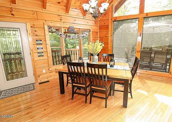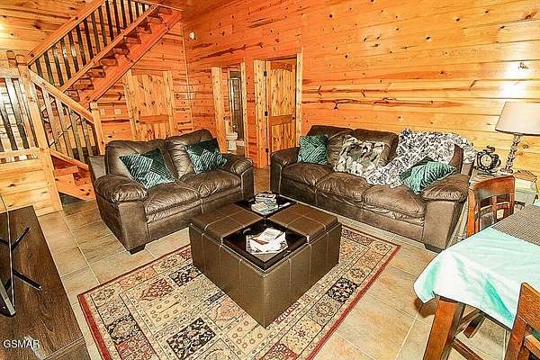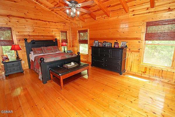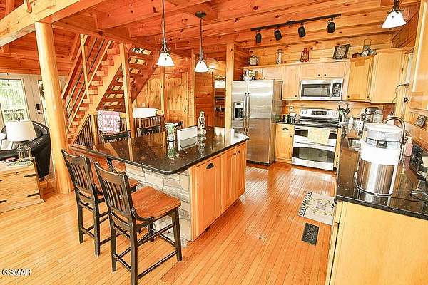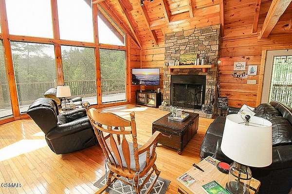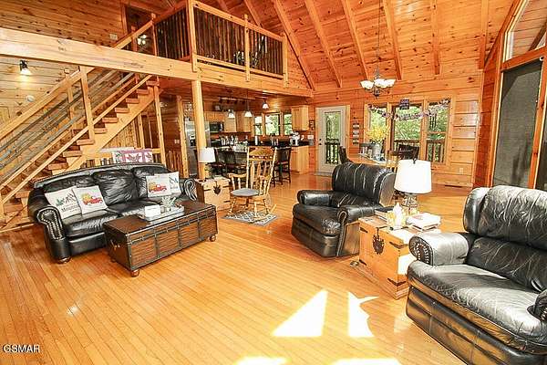 JUST REDUCED ! Welcome to your own GET-A-AWAY in the SMOKIES! WHAT A LOCATION ! Close to all the restaurants & entertainment but best of all the GREAT SMOKY MOUNTAINS ! This lovely 4 bdrm 3 ba CUSTOM BUILT home has been utilized as a permanent home since built in 2008 however, it could also be a vacation home or OVERNIGHT RENTAL property. SOME FURNISHINGS ARE INCLUDED. It's VERY RARE to find a mountain home- especially so close to the city- on 2.6 acres ! The acreage below where you enter is BREATHTAKING ! The STORAGE BUILDING is on a slab & has electricity. From the home there are views of Mount LeConte- mostly in fall & winter but trees could be topped for clearer views. Sellers enjoy the canopy of trees. On the main level you'll find HARDWOOD, FLOOR TO CEILING E-rated WINDOWS with a ''prow'' design feature- my personal favorite ! The kitchen boasts of a large bar with silestone quartz & DOUBLE OVENS. There's also a large coat/ storage closet & ample sized PANTRY. MOST ALL DOORS IN THIS HOME HAVE 36'' ADA STANDARD DOORS. On this level there are 2 bdrms, 1 large gorgeous bath & a laundry room complete with cabinetry & sink. On this main level You'll LOVE the ample decking (Modern View/ Fiberon-composite) for entertaining or just hanging out- a perfect place for a FIREPIT. Upstairs you'll discover a den with storage that overlooks the first level. Then move on to the over-sized master suite you'll savor & appreciate. Master closet is HUGE ! The basement includes a living space with french doors leading onto the sweeping patio, bdrm with walk-in closet, bath & an OVERSIZED 2 CAR GARAGE with 9 & 10 ft doors. Enjoy 2 DRIVEWAYS- one going to the main level & one straight in the garage. The garage could be converted to a GAME ROOM if you like. This property has been the sellers pride & joy so they have performed regular maintenance on their home. Pest pods by Johnson Pest Control here locally. The home has 6x12 LOGS, PEX plumbing & a 225 electrical panel with 42 breakers. There are 2 HVAC UNITS- 1 1/2 TON & 3 TON-both heat pumps. LOTS OF ADDITIONAL DETAILS PROVIDED WITH THIS LISTING. This just may be the PERFECT HOME for YOU. TO VIEW this unique property call LIST AGENT OR if are officially REPRESENTED by a Realtor please contact THEM. All information DEEMED RELIABLE but not GUARANTEED. BUYERS to perform their own DUE DILIGENCE. DRONE PHOTOGRAPHY WAS USED IN THIS LISTING.