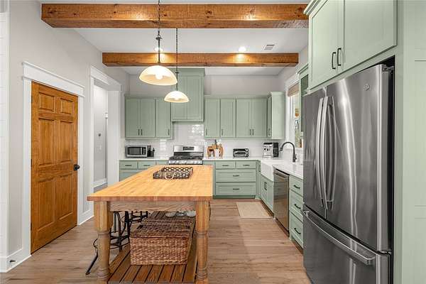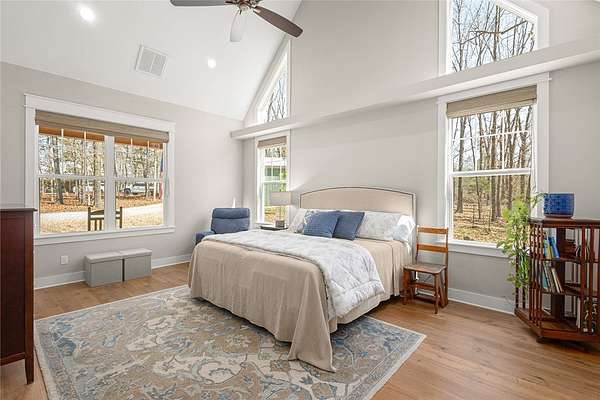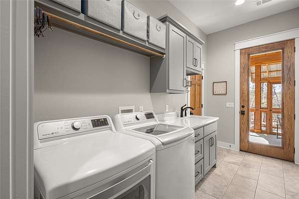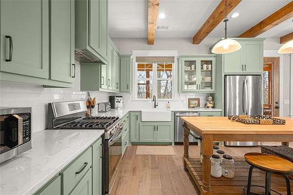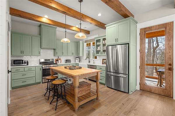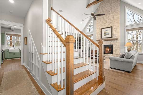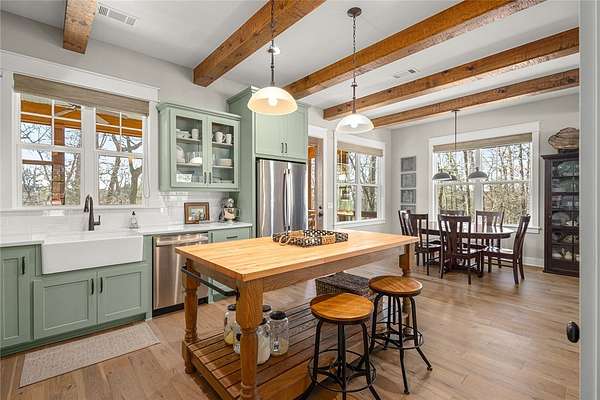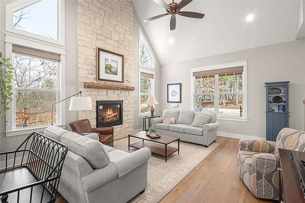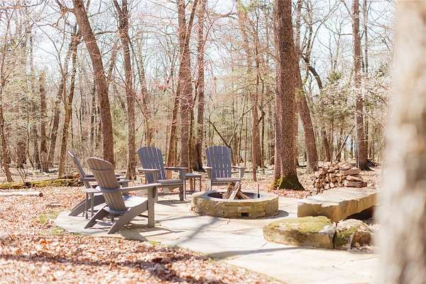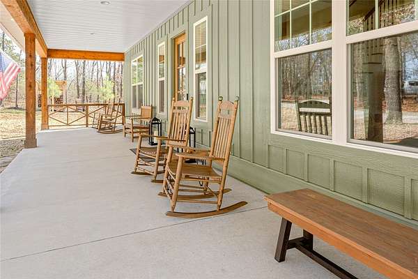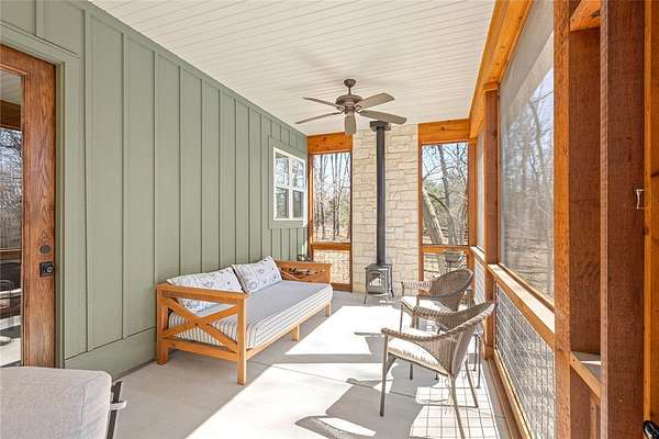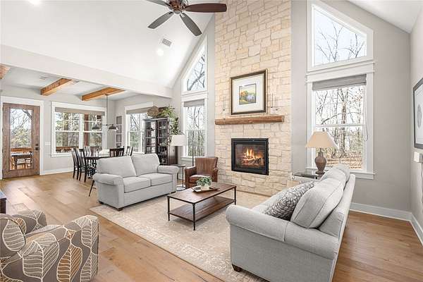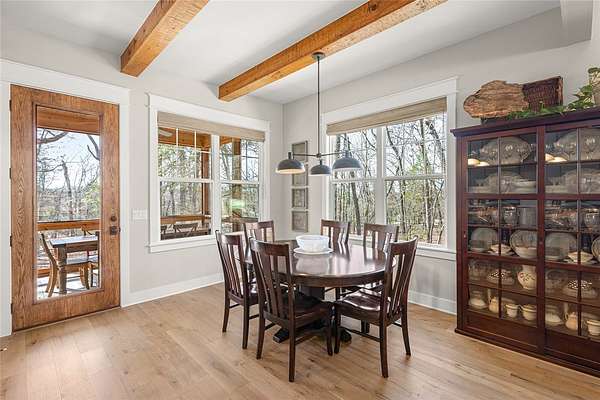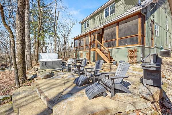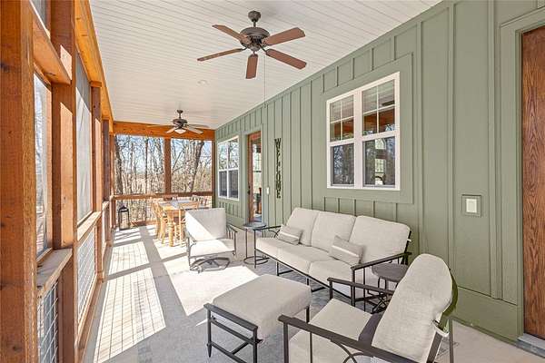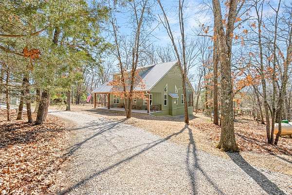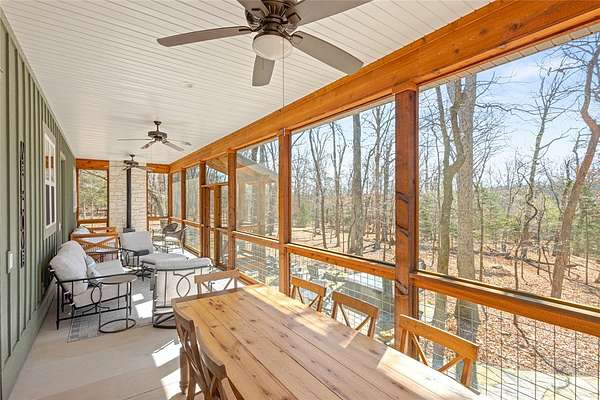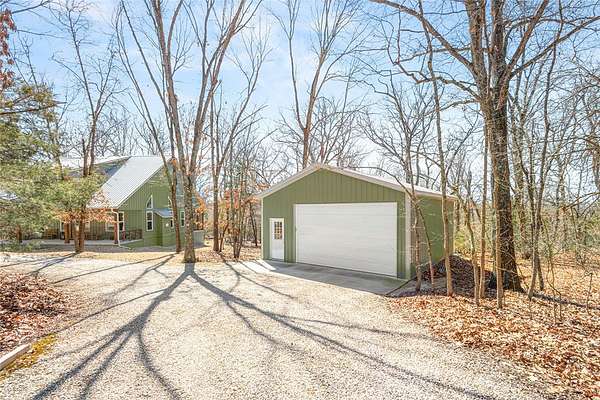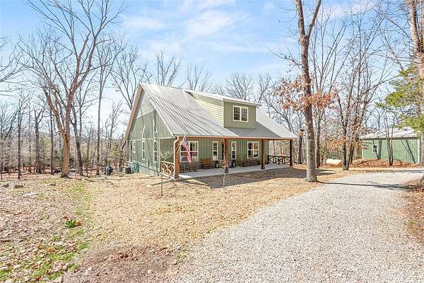 Retreat to this meticulously maintained, custom home on Beaver Lake, nestled on 4 private, wooded acres with seasonal lake views. Designed for those who value craftsmanship & peace, every detail is intentional, from high-end finishes & white oak hardwood floors to expansive windows framing natural surroundings. Enjoy indoor-outdoor living on two 10x44' porches, one screened, & native stone patio w/hot tub & fire pit. Inside, a stunning great room features 20-foot Texas Limestone fireplace & pine beams. A chef's kitchen boasts custom island, quartz counters, stainless steel appliances, farmhouse sink, & walk-in pantry. Primary suite is a quiet sanctuary w/soaring ceilings, pine beams, & spa-like bath w/a soaking tub & walk-in shower. Upstairs offers 2 large bedrooms w/en-suite baths & versatile bonus space. Hobbyists will love the two detached, 2-car garages, one w/workshop. Located a short drive from Rocky Branch Marina & Hobbs State Park, this legacy property offers a lifestyle of quiet luxury & outdoor adventure!