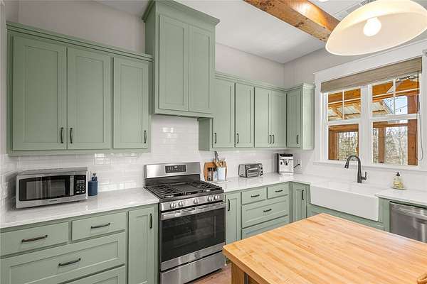 - Counter Top, Dishwasher, Disposal, Energy Star Qualified Appliances, Gas Range, Microwave, Plumbed For Ice Maker, Propane Water Heater, Range Hood, Refrigerator, Self Cleaning Oven, Tankless Water Heater