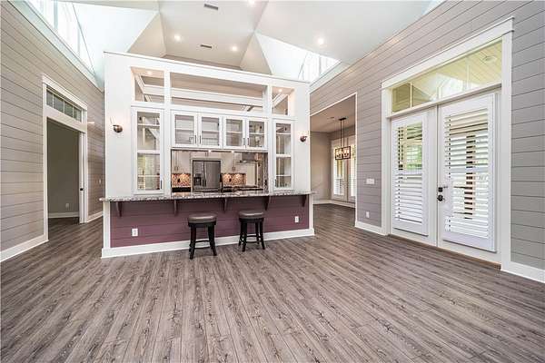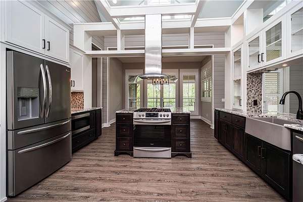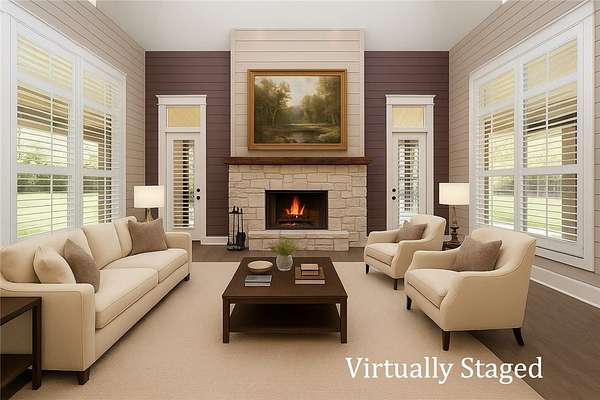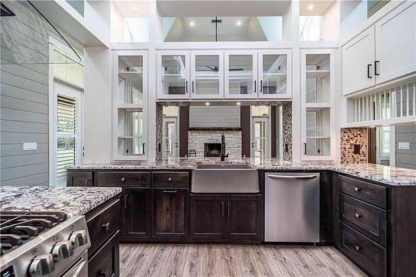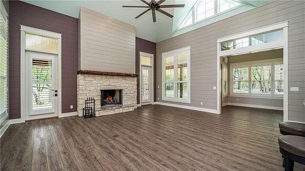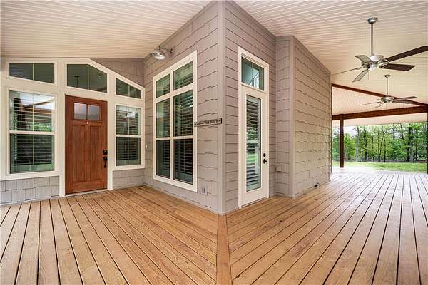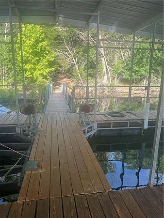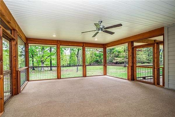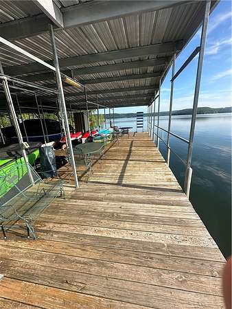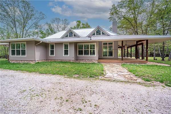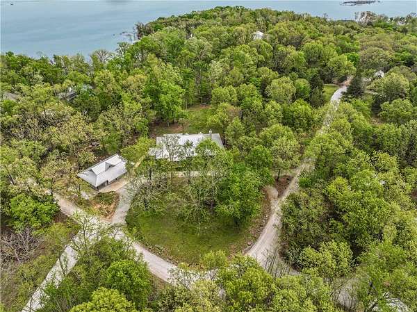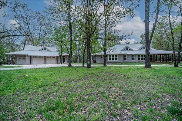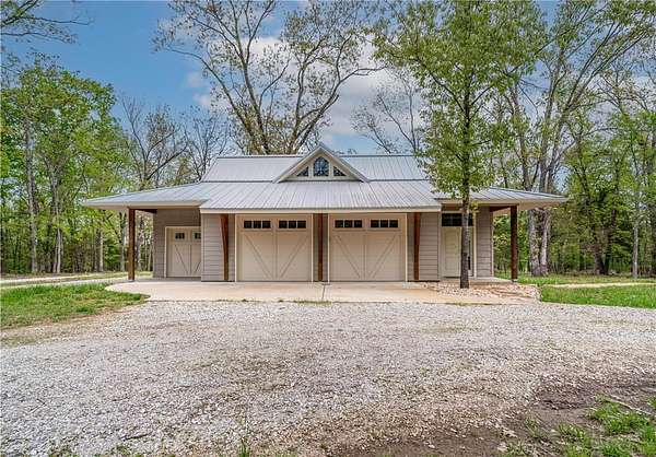 Rare 3-bedroom Beaver Lake estate-one bedroom privately located in a detached guest suite with its own full bath, and two ensuite bedrooms in the main residence-all set on level acreage with private dock access and exceptional privacy. The 2,475 sq ft main home offers 2.5 baths and thoughtfully designed living spaces, while the detached oversized garage provides the third bedroom retreat. Crafted with enduring materials including LP Smart Siding, seamless metal roofing, closed soffits, a whole-house generator, and storm shelter for peace of mind. The primary suite offers a spa-caliber hydrotherapy ozone tub, and the chef's kitchen features a gas range with air fryer, drawer microwave, breakfast bar, and all refrigeration units included. Set on 2.1 pristine, level acres with underground pet fencing, dual RV hookups, and just a short stroll to the community dock with boat slip and swim platform. Under appraisal.