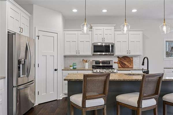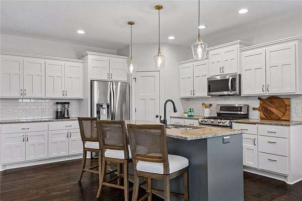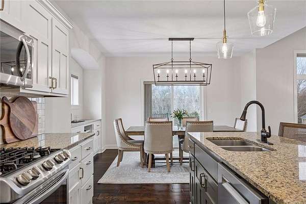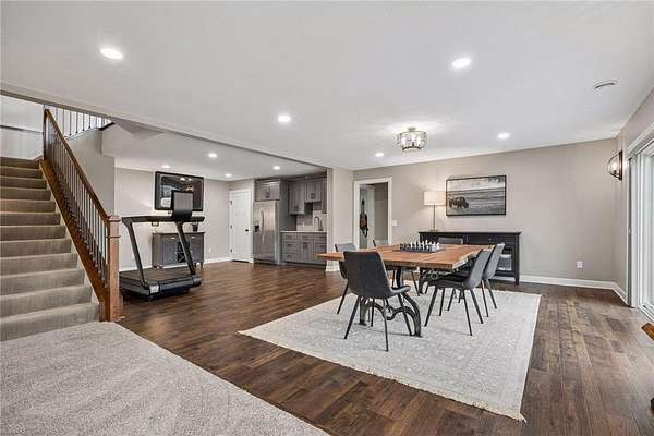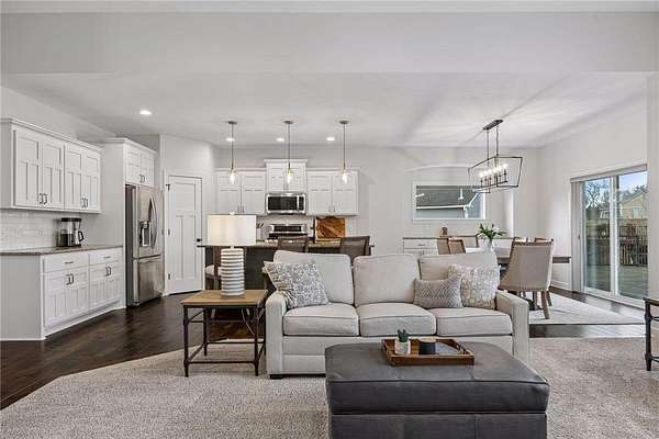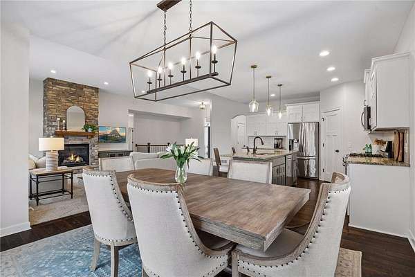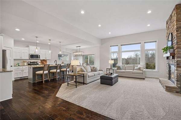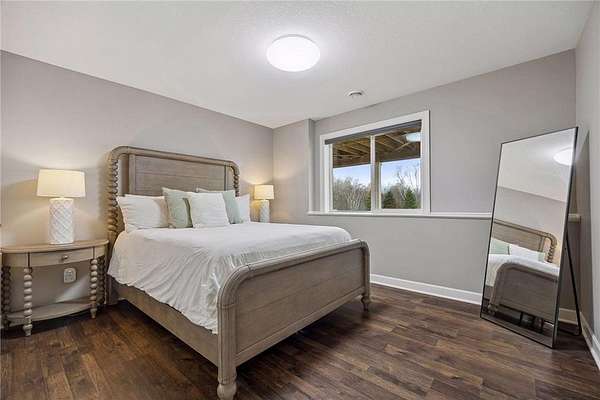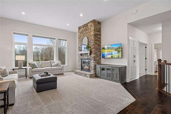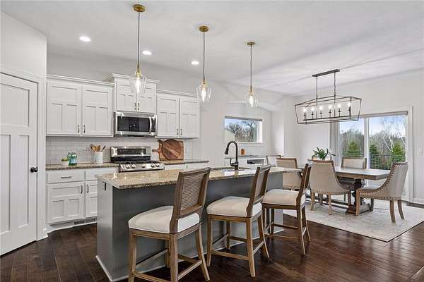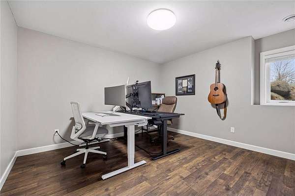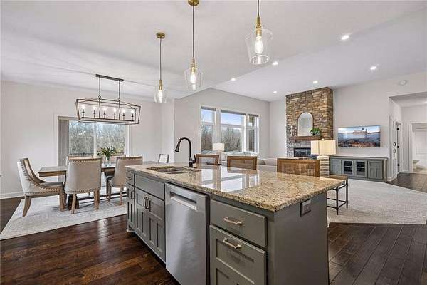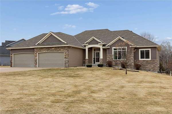 Available only due to relocation, this exceptional opportunity offers space, comfort, and scenic beauty on the nearly 4 acres with Cedar Creek flowing through the property. This expansive 4-bedroom, 3-bathroom walkout rambler features a rare combination of functionality and lifestyle, including a heated 4-car garage and a newly built outbuilding, perfect for hobbies, storage, or extra workspace. Inside, you will immediately notice the warmth and natural light that fills the home throughout the day. The main level offers an open and inviting layout, highlighted by a spacious great room, a well-appointed kitchen, and a stylish wine bar, ideal for both everyday living and entertaining. The walkout lower level is designed for versatility, complete with a kitchenette or bar area and direct access to your private acreage, making it perfect for hosting, relaxing, or multi-generational living. Step outside to your deck and take in stunning sunset views over the peaceful landscape. This is the kind of setting that makes Oak Grove living so desirable.