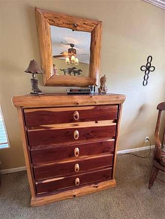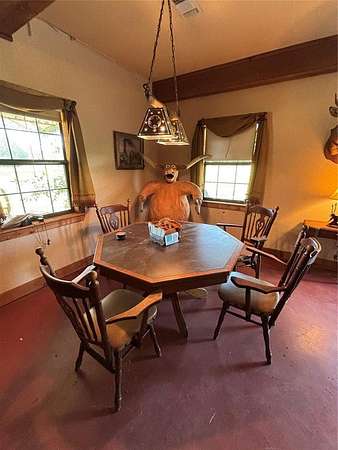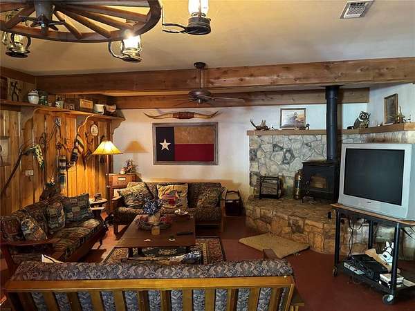 Unique opportunity to purchase your very own 40 acres, located at the end of the road, offering privacy, solitude and great hunting. There are about 8 acres that have been cleared and are annually cut for hay with the balance of the land in timber with some small clearings. There is a fantastic spring fed clear water creek that runs the length of the property. The place is covered up with deer, turkey and wild hogs offering great hunting opportunities. The property has a 3 bed, 2 bath, double wide mobile home that sells fully furnished with beautiful custom-made cedar furniture and tasteful southwest art and decorations. The property also features a metal 60x40 shop with a concrete floor and a finished 20x40 living area that is a great man cave/game room. It has central heat and air, a wood stove, full bathroom, and custom-made bar. This is a fantastic place to entertain friends or extended family. Also transferring is all equipment needed to maintain the property including a 1630 John Deere diesel tractor, bush hog, finish mower, box blade and rake, Kawaski ATV, lawn mower and shop tools. Good hunting places are hard to find, and this one won't last long.