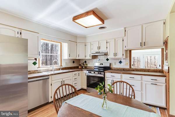 Back on market at no fault to sellers. NEW ROOF installed 9/2025, inspection performed, repairs have made. Nestled on a serene 5.07+/- acre wooded lot, this charming raised rancher offers the perfect blend of comfort and nature. Step into the formal living area featuring a cozy fireplace, ideal for relaxing evenings. The family room provides additional space for gatherings and entertainment, while leading you to the recently updated kitchen with stainless appliances and ample cabinetry. Upstairs, you'll find four spacious bedrooms and two full bathrooms, ensuring ample space for family and guests. The basement level boasts a convenient laundry area, a spare room with storage, and a den equipped with a wood stove. Enjoy seamless indoor-outdoor living with a walk-out from the basement den to the beautiful outdoors. This home also features an inviting all-season sunroom, perfect for enjoying the scenic views year-round. Step out onto the patio off the sunroom for outdoor dining, relaxation, and entertaining. Embrace the tranquility and beauty of this unique property, where every season offers a picturesque backdrop to your everyday life. Call to schedule your private showing!