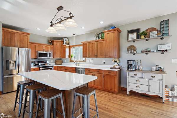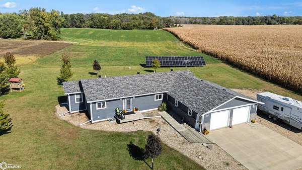 Welcome to your own private retreat-an incredible country home set on more than 17 acres, surrounded by peaceful views and endless possibilities. This 3-bedroom home offers comfort, efficiency, and style at every turn. The main floor features a spacious open layout with a beautiful kitchen and dining area that flows seamlessly into the living room. The main-floor primary suite provides a relaxing escape, while the convenient mudroom and main-floor laundry add everyday functionality. Downstairs, the finished basement is made for entertaining with a fantastic bar and recreation area, plus potential for two additional bedrooms-egress windows already in place. Energy efficiency shines with geothermal heating and solar panels, keeping utility costs impressively low. Step outside to the show-stopping back deck made of low-maintenance composite materials, where you can unwind and take in stunning country views. The property backs onto a 160-acre forest preserve, offering ultimate privacy and tranquility. The home features a roof less than 3 years old, smart siding, and a whole-house generator for peace of mind. And for those needing extra space, the incredible 40x64 heated building with 100-amp service is ready for all your hobbies, projects, or storage needs. This one-of-a-kind property combines modern comfort with the beauty of nature-your country dream home awaits. Don't wait! Call today to call this beauty "home!"