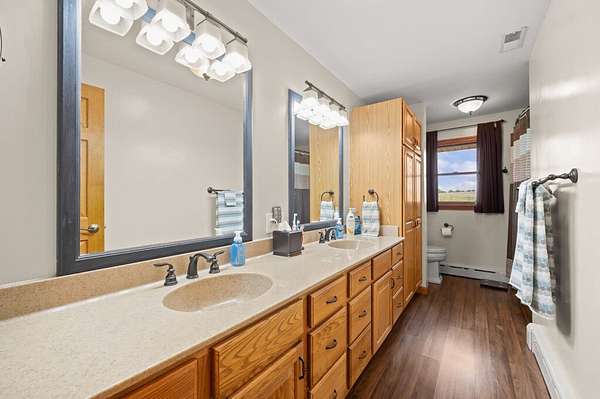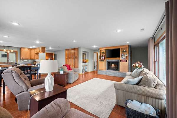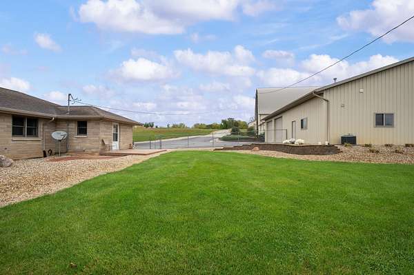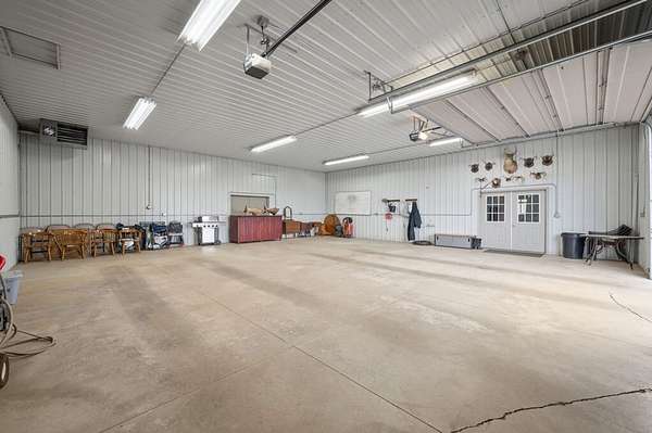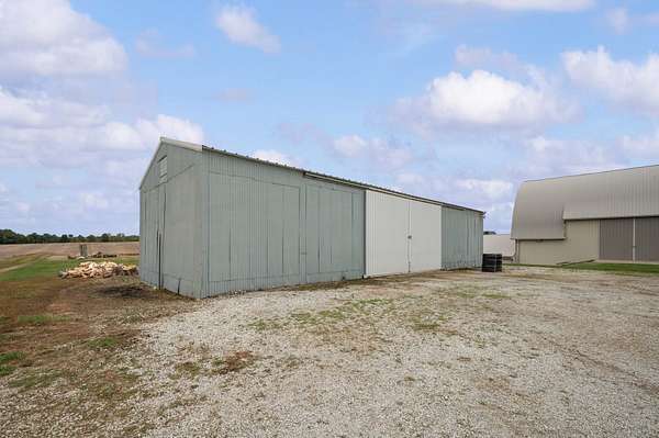 The property features a 2,801 sq ft home with 4 bedrooms and 1.5 baths, offering comfortable living space surrounded by scenic farmland views. A 60' x 40' pole building includes 20' x 20' finished living quarters featuring a kitchen, living room, and bathroom -- perfect for guests, farmhands, or additional rental income. The remaining 40' x 40' shop area includes concrete floors, insulation, and heat, ideal for storage or workshop use.