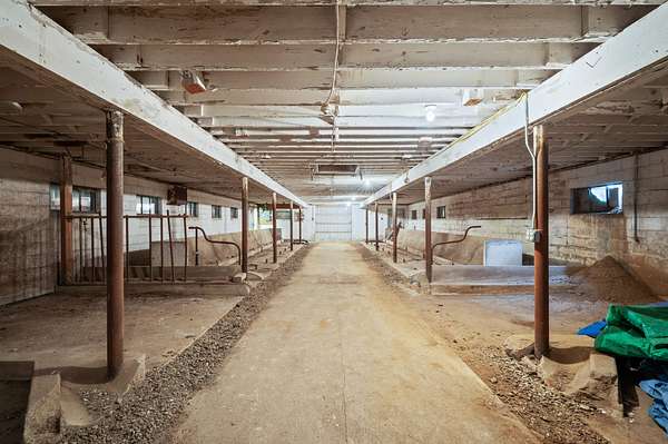 A beautifully maintained 32' x 54' older milk barn with a 40' x 90' barn attachment highlights the property's classic farm charm, while the additional 32' x 40' x 18' pole barn to the east offers even more utility. This USDA-certified containment building features a specially designed concrete floor for containment and spill control and includes 200-amp electrical service.