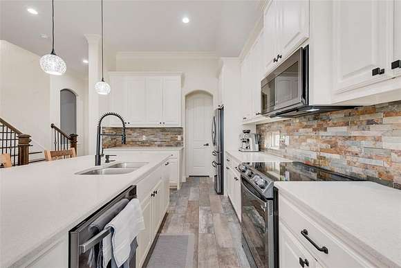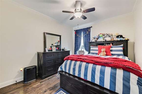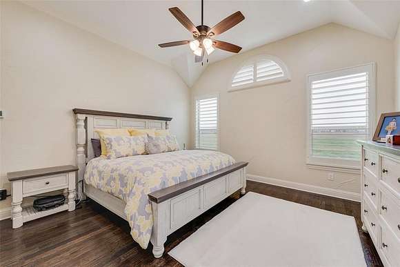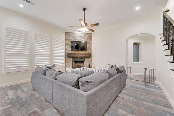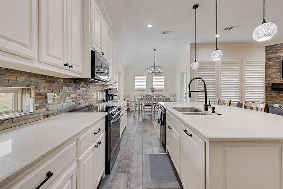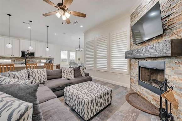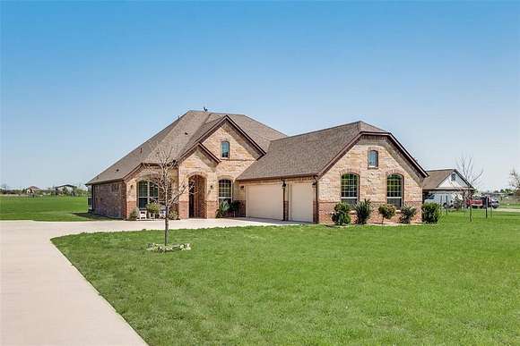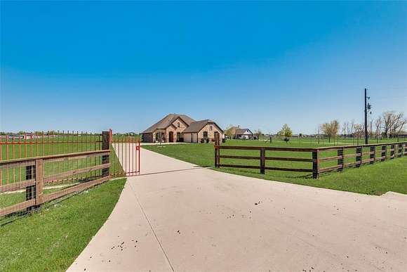 LUXURIOUS COUNTRY RETREAT in Caddo Mills! Discover an exquisite blend of modern elegance and tranquil country living in this 5 bedroom, 3.5 bath marvel. Nestled on a sprawling 4 acre lot with a privacy gate. Bring your horses or raise a few chickens! OK to build a workshop. Construction began in 2017 and was first occupied in August of 2022. This home promises the pinnacle of comfort and style. Step inside to a bright, open floor plan adorned with designer luxury features like hand-scraped oak hardwood floors, wood look ceramic tile, and 8-foot doors. Experience the warmth of a stacked stone, floor-to-ceiling wood burning fireplace complemented by 4.5-inch Plantation Shutters throughout, extensive crown molding, and attractive fixtures. The kitchen dazzles with stainless steel appliances, abundant cabinets with knobs & pulls, quartz counter tops, and a great pantry. Wrought iron staircase leads to the upstairs game room with an adjoining bedroom and full bath is perfect for entertaining or get away for guests or multi-generational living. Accented art niches, skip trowel finishes. Extremely energy efficient. No HOA, minimal restrictions.