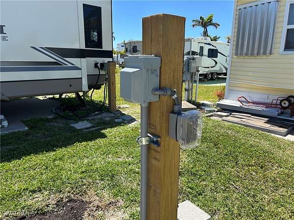 Embrace the tropical lifestyle at Palmetto Palms RV 55+ Condo HOA, where you own the land. This vacant lot is ideally located just a short walk from the community pool, clubhouse, and tennis courts. Electric is restored and ready for RV hook up. Situated in a deed-restricted community, this lot provides an excellent opportunity to place your RV or build a park model home. Palmetto Palms offers resort-style amenities, including pickleball, shuffleboard, volleyball, horseshoe pits, and a scenic walking path over the lake. Boat storage is available, and Bunche Beach is within walking or biking distance. Enjoy an active and welcoming 55+ community in a prime location near shopping, dining, and outdoor recreation. Don't miss this opportunity to own a piece of paradise.