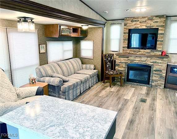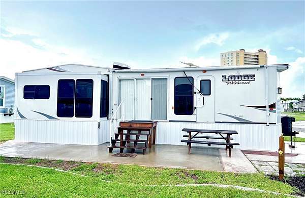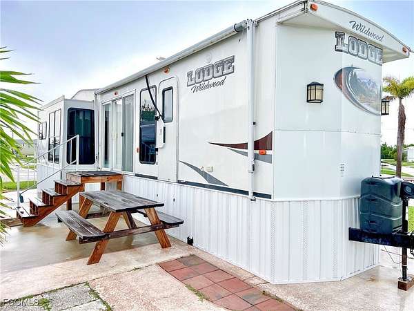 Live your Florida dream! Fantastic lot including a 2012 Wildwood Lodge Park Model. New electric in 2023, 4pt. inspection, and survey on file. New skirting around RV in August 2025. Lot and RV are approved by the HOA and ready to move in! Palmetto Palms RV Condo, a 55+ community with an HOA. Pool, Tennis, Pickleball, and many other community amenities and activities. This is a Fantastic community where you OWN Your Land with water, sewer, cable and electric available. Park your RV, or place a new manufactured home on the lot! Palmetto Palms offers Boat Storage and is biking or walking distance to Bunche Beach. So close to Fort Myers Beach and Sanibel Island, with endless opportunities for boating, beach outings, dining, and so much more. Embrace the SW Florida tropical lifestyle at Palmetto Palms RV!