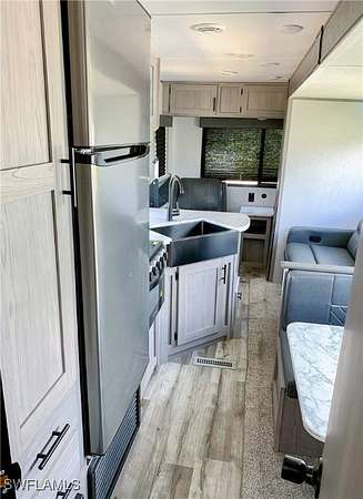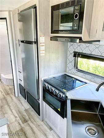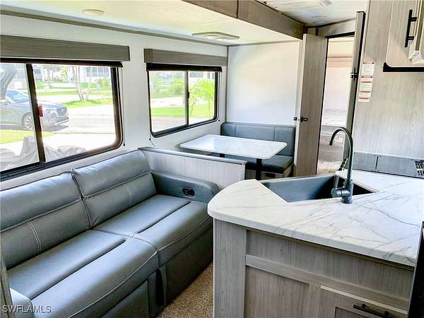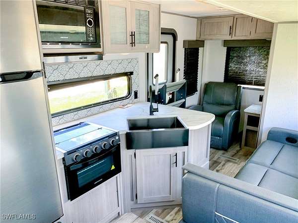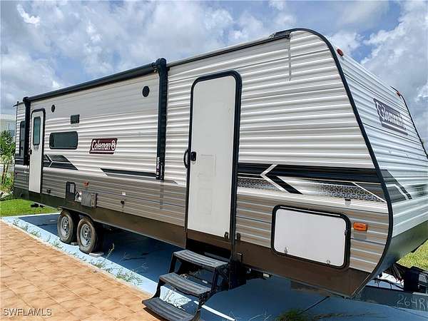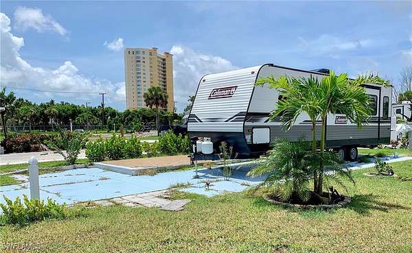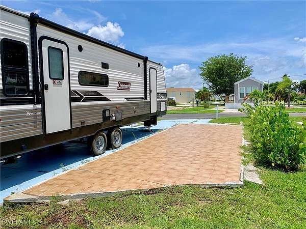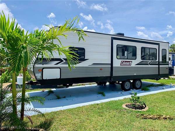 Very desirable location on a 2-way wider street in rear of the Community! Enjoy the tropical lifestyle at Palmetto Palms RV 55+ Condo HOA where you own the land! This beautiful lot includes a 26' Coleman Lantern RV and is ready to move in and enjoy! Located just a short stroll to the community pool, clubhouse and Tennis Courts. 38x57' lot is Beautifully Landscaped lot with a Calusia privacy screen. 50AMP ELECTRIC Panel is updated and ready for water/sewer hook-up. The elevated pad ensures your entertainment areas stays dry even in heavy rain events. Spacious bathroom with corner shower. Well equipped kitchen includes everything you need! Living, Dining and Kitchen area have plenty of natural light and the neutral color palette gives a blank slate to put your personal design touches. Enjoy other amenities like pickleball, shuffle board, volleyball, horseshoe pits, and a community walking path/bridge over the lake. Palmetto Palms also offers BOAT STORAGE and is biking or walking distance to Bunche Beach. Water, Sewer, Cable and Electric available in the community. Very close to FMB and Sanibel beaches, restaurants, and all this area has to offer.Great location!RV Highlights from the Manufacturer, Dutchmen Coleman Lantern Series travel trailer 264RL: Dual Entry Fireplace Walk-Through Bath Swivel Rockers Power Tongue Jack 16' Power Awning Relax and unwind inside this trailer after a fun day outdoors exploring! You and your person can sit in the swivel rockers as you enter the trailer or make a meal using the residential appliances and farm style sink with high rise faucet. Dine inside at the booth dinette or while in the reclining sofa, or eat outside while under the 16' power awning. Your camping chairs can be taken from the front pass-through compartment to help create an outdoor living area under the awning. If you need a restroom break, you can enter the second entry/exit for the trailer into the front bedroom to reach the walk-through bathroom. And the bedroom provides a queen bed, clothing storage and privacy at night. With any Coleman Lantern Series travel trailer and toy hauler travel trailer, the interior will impress with upgraded Beauflor linoleum for style and durability, dual row LED interior lighting, residential appliances and seamless countertops, and a high output furnace for those cooler camping adventures. The Dutchmen construction advantage is included and provides a durable roof structure with a TPO roof, 3/8" decking, fiberglass insulation, and a lauan interior panel, plus an insulated structure with a metal exterior panel, a wood frame with R7 thermal insulation and an lauan interior panel. Also included is the Blade air flow system which helps reduce air turbulence and noise with duct elbows and wyes that feature enlarged inlets. Choose a Coleman Lantern Series because you appreciate quality, value and design when you camp!