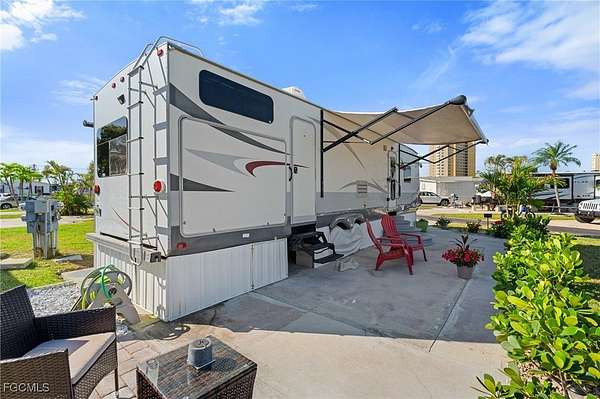 Escape to the tranquil beauty of Palmetto Palms RV Resort, your gateway to the vibrant coastal paradise of Southwest Florida. Here is your opportunity to own your own piece of land in this active 55+ community, perfectly situated near the shores of Fort Myers Beach and Sanibel Island. This exceptional non-pet lot offers the ideal setting for your RV or manufactured home if you decide to purchase without the current RV. The lot is complete with an updated 50-amp electrical panel - ensuring you're prepared for comfortable and convenient living. Palmetto Palms boasts a wealth of amenities designed to enrich your lifestyle. Engage in a variety of social activities, fostering new friendships and a strong sense of community. Enjoy convenient access to boat storage and explore the natural beauty of Bunche Beach with a leisurely bike ride or stroll. The nearby attractions of Fort Myers Beach and Sanibel Island offer endless opportunities for explore and find new adventures. While the community is diligently recovering from the effects of Hurricane Ian, the resilience and spirit of Palmetto Palms shine through. With the quarterly HOA fee being just $600 it is very affordable living. This represents a significant investment in the maintenance and enhancement of this exceptional community. Your new paradise is just a click or phone call away. RV SOLD SEPERATELY FROM LAND