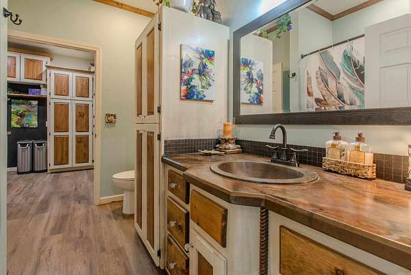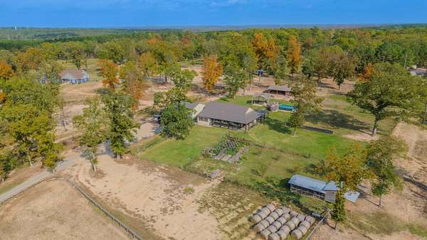 Enjoy country living at its finest on this beautiful 4.31-acre property featuring wrap-around porches, multiple fenced areas, and lush gardens with fruit trees. Several options for a 3rd bedroom or more. The grounds include a chicken coop, a relaxing gazebo, and semi in ground pool--perfect for entertaining or unwinding outdoors. With plenty of space to roam and relax, this property offers the ideal blend of comfort, privacy, and rural living. Now priced 30K below appraisal. The room features a breathtaking vaulted wooden ceiling with exposed beams, creating warmth and character that extends throughout the home. The rich wood tones are beautifully complemented by sleek, dark accent walls and recessed lighting, creating a cozy yet sophisticated atmosphere. The kitchen, seamlessly connected to the living area, showcases a large breakfast bar with seating, stainless steel appliances, and two-tone cabinetry that ties the rustic and modern aesthetics together. Luxury vinyl plank flooring runs throughout, enhancing the room's open flow and durability. Two large bedrooms can serve as a primary on either side of the home. Potential for 3rd bedroom (sitting room ). See agent remarks