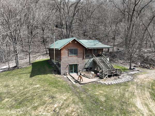 High Point Land Company is honored to present this 2.98+/- acre log cabin acreage located in the heart of the Driftless region along the Upper Iowa River. Located in Allamakee County, IA this property is every outdoor enthusiast's dream. Nestled along the base of a beautiful timber hillside, this charming 1,152± square foot log cabin home sits on 2.98 scenic acres facing the Upper Iowa River Valley. The cabin is equipped with two bedrooms, one bathrooms, a full kitchen, and a comfortable living room located on the upper level. This functional and inviting layout provides everything needed for a cozy stay after a full day of outdoor adventure. The lower level features a three quarter bath and a wide-open layout with plumbing already in place, offering excellent potential for future build-out or additional living space. With impressive 10-foot ceilings, the space provides flexibility for expansion while maintaining an open, airy feel. Last, the cabin is warmed by the crackle and character of a classic wood-burning stove, providing both efficient heat and an authentic lodge-style atmosphere that perfectly complements the log constructions. Aside from the forever home, let's not forget this authentic log cabin presents a unique investment opportunity in the heart of Northeast Iowa, an area renowned for its scenic bluffs, trout streams, and abundant outdoor recreation. Ideal as a short-term or season rental, the cabin caters perfectly to outdoor enthusiasts seeking private retreat for hunting, fishing, hiking, and exploring the Upper Iowa River Valley. Its rustic charm, natural setting, and proximity to public lands, trout streams, and recreational amenities make it highly attractive for consistent rental demand, while also offering owners a personal getaway in one of Iowa's most sought-after outdoor destinations. Enjoy breathtaking views and the peaceful setting this unique landscape is known for-rolling bluffs, mature timber, and abundant wildlife. Property Features - Upper Iowa River Frontage - Close proximity to public hunting access and trout streams - Driftless Region - Log Cabin - Investment Opportunity Property Address 1969 Ferris Mill Rd, Decorah, IA 52101