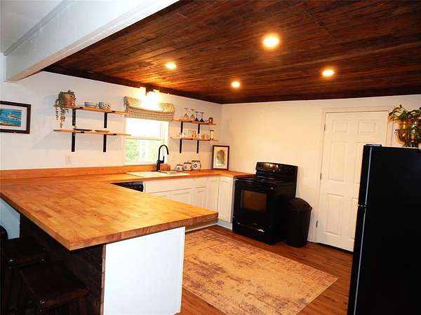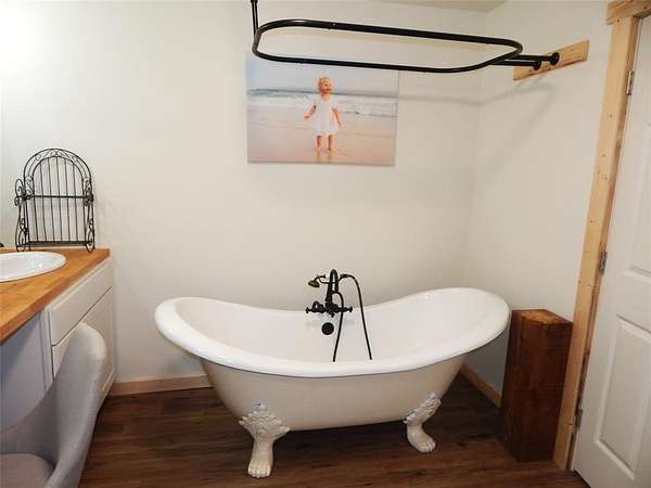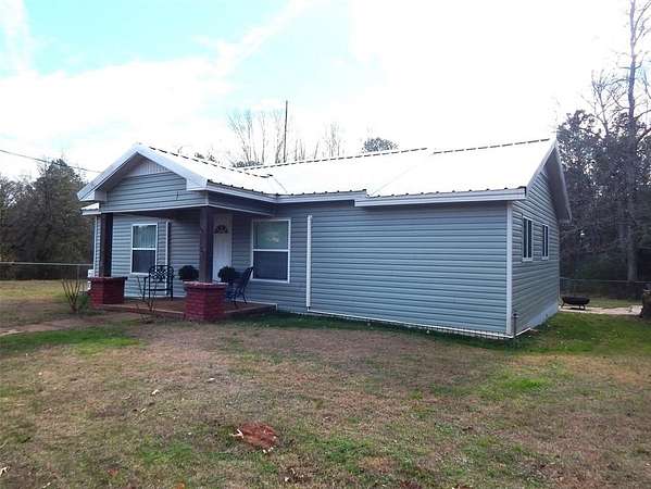 Charming farmhouse situated on 8.747 beautiful acres with property on prime Hwy 64 frontage. This adorable 1,200 sq ft home has been thoughtfully updated with new windows, metal roof, siding, and a remodeled interior. Interior features include butcher block countertops, vinyl plank flooring, and natural colors throughout. The primary bath offers a clawfoot tub with double sinks, adding timeless farmhouse charm. The home is efficiently heated and cooled with zoned mini-split units. The large primary bedroom closet is at this time being used as a 3rd bedroom for small children Enjoy morning coffee on the front porch or entertaining in the backyard. The homesite includes a fenced yard for convenience and security, along with a chicken coop, carport, and additional workshop space. The land is highlighted by stunning mature oak trees, mostly wooded acreage, and select open areas with a creek--perfect for enjoying nature. A metal barn with its own electric meter provides excellent versatility. The property also features an RV hookup with water, electric, and septic, complete with separate water and electric meters--ideal for guests, rental potential, or future expansion. A rare opportunity combining charm, functionality, and acreage in a location convenient to both Tyler and Henderson.