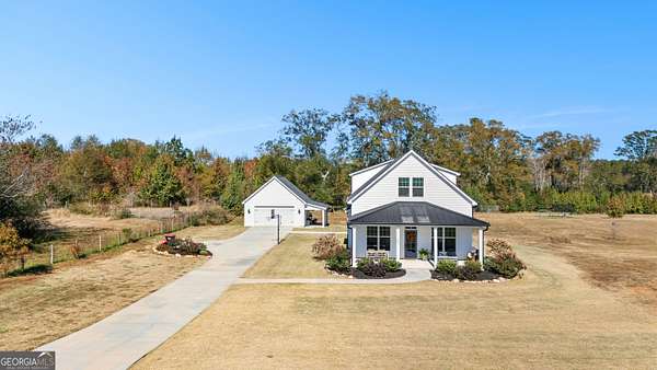 Beautiful Custom-Built Modern Farmhouse on 2.71 Acres in Molena! Fall in love the moment you arrive at this charming 3-bedroom, 3.5-bath home nestled on a peaceful piece of countryside. The inviting open floorplan is perfect for everyday living and entertaining, featuring a spacious family room with a cozy stone fireplace, large dining area, and a gorgeous kitchen with plenty of cabinets, beautiful quartz countertops, tile backsplash, a big island with breakfast bar, and a walk-in pantry. The owner's suite on the main level offers a relaxing retreat with a large vanity, tile shower with glass door, and a soaking tub surrounded by beautiful tile. Upstairs, each bedroom has its own private bath plus there's a great media loft-ideal for movie nights, homework, or hanging out. Enjoy peaceful mornings on the rocking chair front porch and quiet evenings on the covered back patio overlooking the spacious backyard. You'll also love the 2-car detached garage with a lean-to area-perfect for storing lawn equipment or outdoor toys. Built with energy-efficient spray foam insulation, this home is as practical as it is beautiful. Country living at its best-come see why you'll want to call this place home!