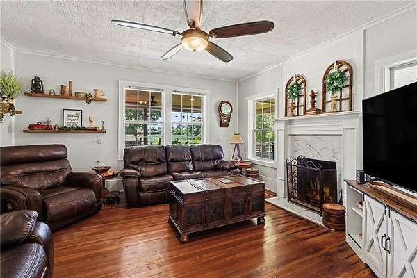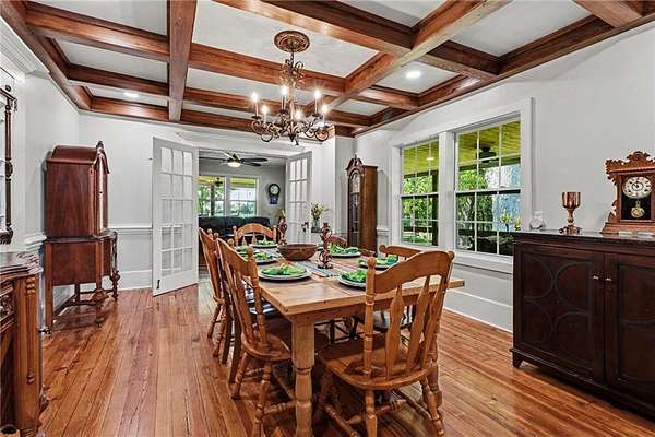 Tired of sitting in traffic and dealing with congestion? Wake each morning to the sound of birds chirping, the gentle rustle of leaves in the breeze, and the sight of the sun rising over your own private retreat. Step outside to tend your garden where fresh vegetables grow and fruit trees stand ready for picking. Spend warm evenings splashing in the pool or roasting marshmallows by the campfire as tree frogs sing in the distance. This is more than a home, it's a lifestyle far removed from the hustle and bustle of city life. Experience it all in this charming 1900 farmhouse, rich with character and timeless details, including original hardwood floors, tongue-and-groove ceilings, crown molding, and thoughtful craftsmanship throughout. This spacious 5 bedroom, 4.5 bath home is perfect for a large or multigenerational family and offers excellent income potential with a private attached apartment featuring its own separate entrance. The main home welcomes you with a foyer reminiscent of days gone by. The living room is filled with natural light from large windows and offers the perfect setting to enjoy a cozy fire on cooler evenings. The expansive dining room showcases beautiful millwork and a coffered ceiling creating an inviting space for gatherings with family and friends. The country kitchen is both functional and charming complete with a butler's pantry and an additional pantry providing ample storage. Just beyond, a conveniently located office makes working from home both comfortable and practical. Upstairs, you'll find two generously sized secondary bedrooms that share a well-appointed bathroom offering both space and comfort. Step outside and discover what truly sets this property apart. The wraparound porch provides endless places to relax and take in breathtaking sunrises, sunsets, rolling pastures, and glimpses of grazing cows, deer, and other wildlife. The meticulously maintained grounds feature vibrant flowers, shrubs, fruit trees, gardens, and berry patches reflecting a true love of nature. Additional features include a woodworking shop, two storage sheds, and a pool house, giving you all the space you need for hobbies, storage, and recreation. Whether you're looking for a homestead, hobby farm, acreage, income-producing property, or simply a peaceful place to call home, this serene setting feels like paradise yet remains conveniently located near I-75.
