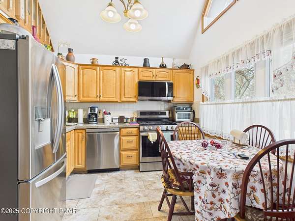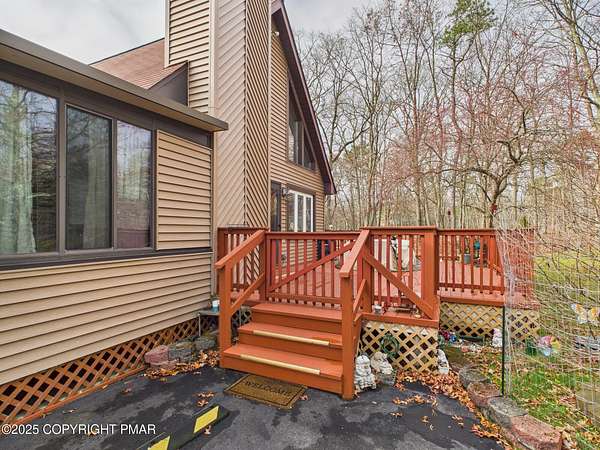 Discover this lovely, well-maintained chalet in the private and beautiful Pocono Mountain Lake Estates - first time ever on the market! Proudly built and lovingly cared for by the original owners, this charming home offers that true mountain-retreat feel with all the comforts you want. Step inside to a bright, airy interior featuring cathedral ceilings, hardwood floors, and an open, welcoming layout. The updated kitchen includes stainless steel appliances, and the living space fills with natural light. A cozy sunroom adds even more room to relax and enjoy the peaceful surroundings. This home offers 2 bedrooms - including a spacious primary bedroom suite - plus a good-sized loft, perfect for guests, a hobby space, or additional sleeping quarters. Outside, enjoy the serenity of this quiet community with two storage sheds, a newer roof, and a beautifully maintained property that reflects true pride of ownership. A rare opportunity to own a lovingly cared-for chalet in a desirable lake community - homes like this are hard to find!