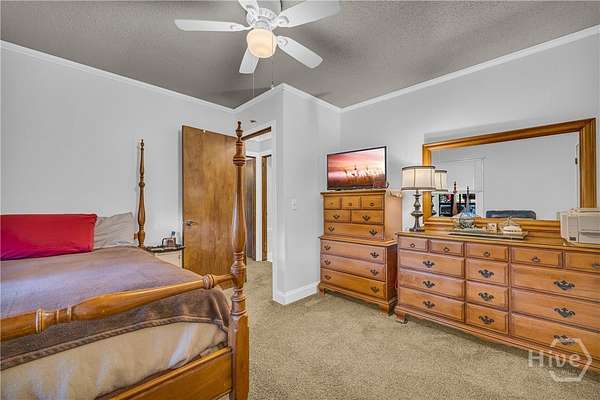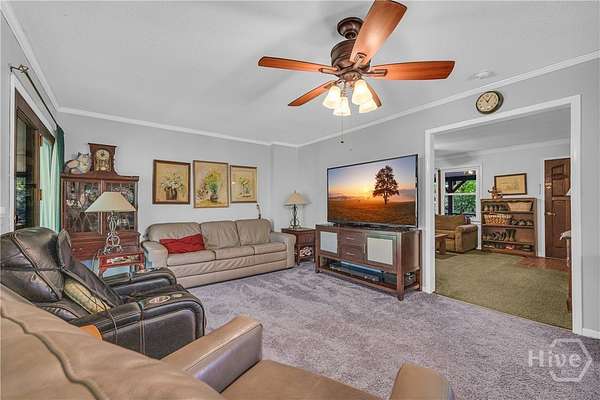 - Ceiling Fan(s), Country Kitchen, Fireplace, Galley Kitchen, Main Level Primary, Pull Down Attic Stairs, Sitting Area in Primary