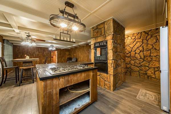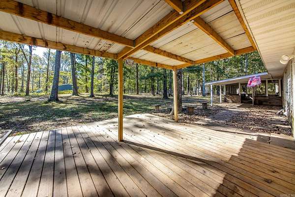 Discover country living at its finest in this 4-bedroom, 3-bath ranch-style home surrounded by 3.16 mostly wooded acres. Enjoy peace and privacy with livestock allowed, a huge fenced chicken coop area, and a 20x20 shop with electricity and RV hookups. Relax or entertain on the new covered deck and grilling area or the enclosed covered porch. Inside, the open floor plan features luxury vinyl plank flooring and warm knotty pine tongue-and-groove walls throughout. The spacious family room flows into a beautifully updated kitchen with new tile backsplash, abundant counterspace, and an island with gas stove. The primary suite offers a walk-in closet, new vanity, and a large jetted tub for ultimate relaxation. The fourth bedroom makes a perfect office or craft room. Country charm meets modern comfort--this is the peaceful retreat you've been searching for!