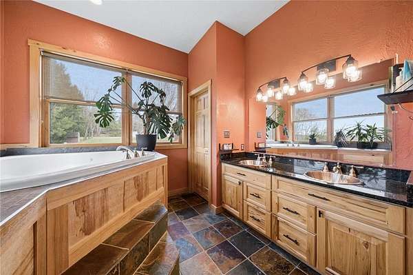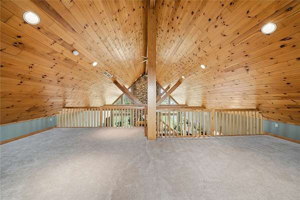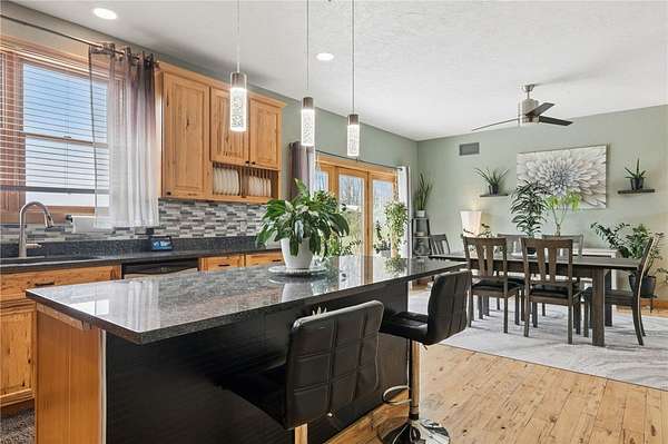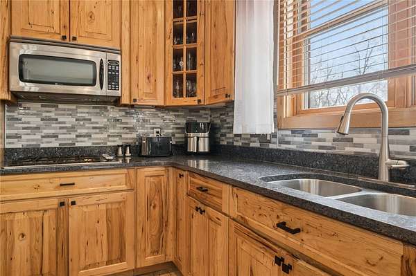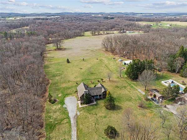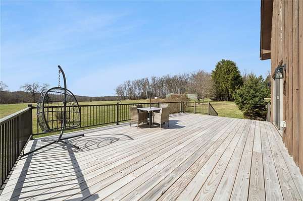 Welcome to a home where craftsmanship meets thoughtful modern upgrades, and privacy is priority. From the moment you step inside, you’ll notice the warmth and durability of beautiful hickory floors and kitchen cabinetry, perfectly complemented by rich granite countertops that elevate the kitchen’s style and functionality. Designed for entertaining, the kitchen features a double oven and cooktop. The open concept floor plan on the main level provides access to the rear deck which is an ideal spot for morning solace with a view as far as you can see. Throughout the home, solid hickory and cherry doors add character and quality. The bedrooms showcase stunning cherry flooring for an extra touch of elegance. Plaster walls provide a level of durability, enhancing the home’s overall feel of quality construction. Comfort and convenience are evident in every detail. A whole house fan offers energy-efficient cooling, and the furnace—just three years old—adds peace of mind. The home also includes a Culligan water softener system for added efficiency. The bathrooms and laundry area feature impeccable slate flooring, and a double-sink vanity in the primary bedroom enhances both style and functionality. You’ll appreciate the cohesive look of brushed nickel switch plates and hardware upgrades throughout, along with custom bamboo blinds that add a refined finishing touch. Cozy up by one of the two fireplaces during cooler months, or step outside to enjoy the brand-new 2025 deck—perfect for relaxing or entertaining. The expansive walk-out basement offers additional potential with plumbing already in place for a fourth bathroom, giving you the opportunity to expand your living space. Outside you'll find mature landscaping and a beautifully stamped concrete walk. This home blends high-quality materials, thoughtful upgrades, and future potential—ready for you to move in and make it your own.