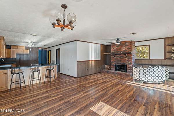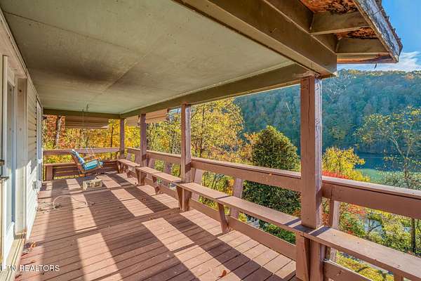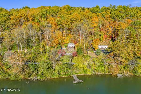 Welcome to 197 Lakecrest Drive in the lovely Holiday Shores Subdivision of Harriman! This charming 2-bedroom, 2-bathroom home offers a lake view and sits on a 2-acre lot. The property includes an additional 960 sq. ft. of finished living space downstairs, a private dock located directly across the road, and a detached unfinished garage for storage or workshop use. The home features a stone exterior with brand new siding, new carpet, and a wood-burning fireplace for cozy evenings. Enjoy natural gas heat, gas water heater, as well gas connection for the stove. Two decks overlook the peaceful surroundings, providing the perfect spot to relax and take in the view. There's also an open area beside the home that offers plenty of possibilities-create extra parking, a pool area, or expand your yard. With its combination of lake access, acreage, and updates, this property is a nice find. What a deal for a lake view home at this price!
