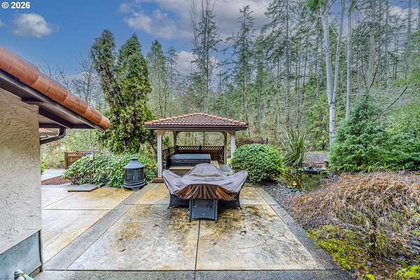 Welcome home to your private countryside oasis. This stunning 4-bed 3-bath Mediterranean Spanish Mission residence is set on 2.67 acres of serene, landscaped grounds. As you enter the home, you will notice a sophiscated 3 level floorplan with exceptional separation of space. Enjoy the generously sized living room with captivating views of the countryside, trees, valleys, and mountains. The gourmet kitchen opens to a beautifully appointed family room with a wood stove that keeps the entire home cozy. Next to the family room is a nice-sized bedroom, which leads to a dedicated area that provides the perfect opportunity for a private office or a stylish bar setup. This space has a slider that leads to a resort-style outdoor retreat featuring a gazebo with a hot tub and outdoor shower. The grounds are meticulously landscaped. Gently framed by natural foliage, it creates a peaceful focal point that enhances the property's serene countryside ambiance. The pond offers a quiet retreat where the water so softly mirrors the trees and open sky, adding a sense of calm and natural beauty to the property. There is a large area to build nice size shop below the property. Come take advantage of this rare opportunity to own a private countryside retreat where timeless design, natural beauty, and peaceful living come together in perfect harmony.