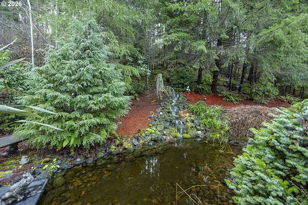 - Covered Patio, Free Standing Hot Tub, Garden, Private Road, RV Boat Storage, RV Parking, Sprinkler, Tool Shed, Water Feature, Yard