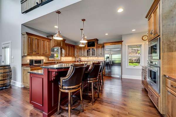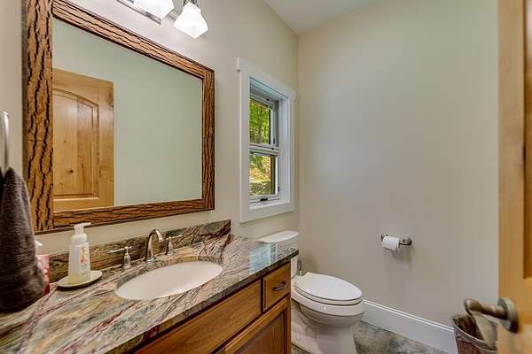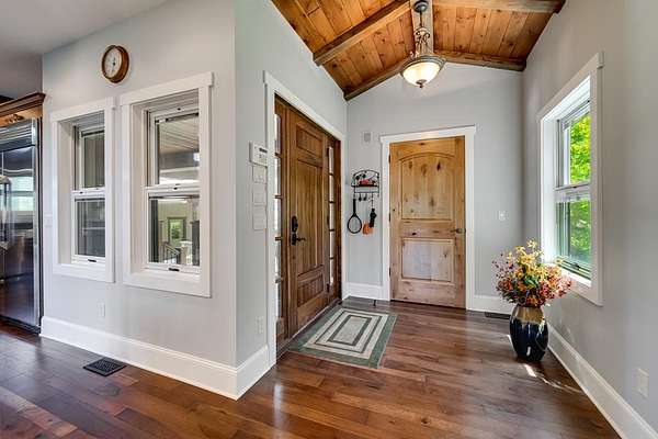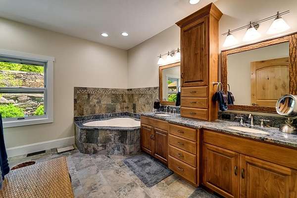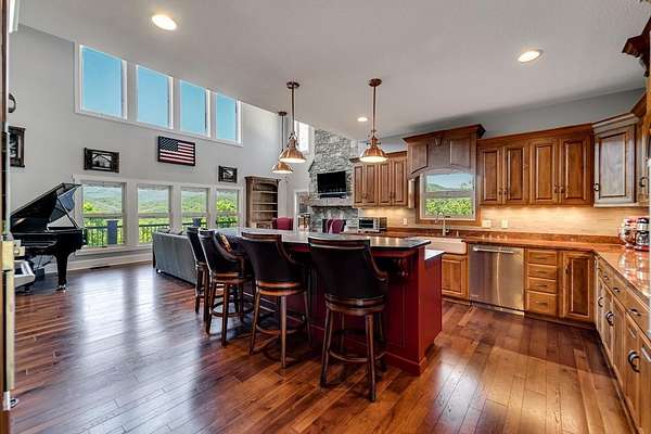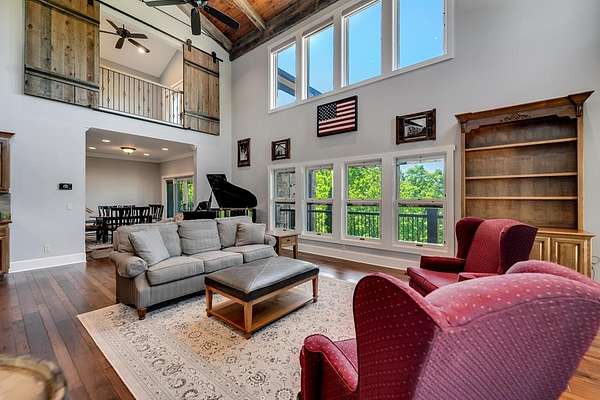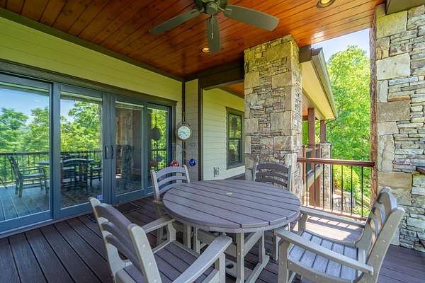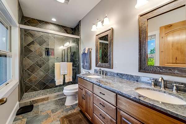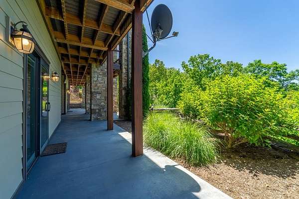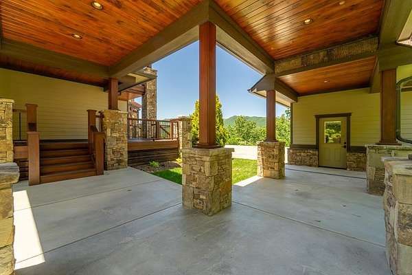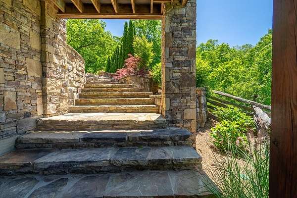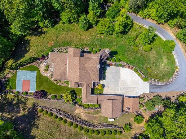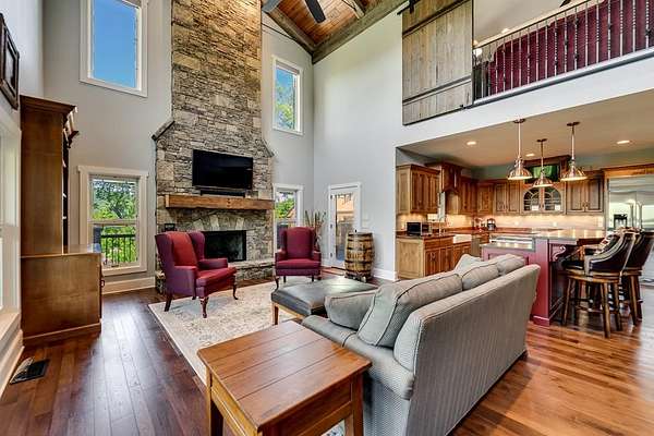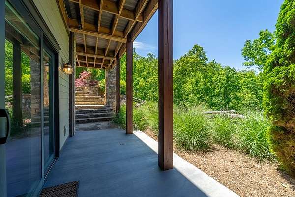 Located less than 10 minutes from the airport, come experience the perfect blend of craftsmanship, comfort, and mountain beauty in this stunning custom home overlooking layers of long-range mountain views. Designed to embrace its natural surroundings, this property offers exceptional indoor-outdoor living and high-end finishes throughout. This home features a propane generator for peace of mind and expansive covered decks and porches ideal for relaxing or entertaining while taking in the panoramic scenery. A dramatic outdoor stone fireplace and pergola seating area create the ultimate mountain ambiance. Inside, the great room showcases soaring vaulted ceilings with exposed beams, rich wood finishes, and a striking floor-to-ceiling stone fireplace. Oversized windows flood the space with natural light and frame the mountain vistas. The open layout flows seamlessly into a well-appointed kitchen with custom cabinetry and quality finishes. Enjoy multiple outdoor living areas, including a covered deck with swing, perfect for morning coffee or sunset views. The home's architecture blends natural stone, warm wood tones, and quality materials that complement the landscape beautifully.