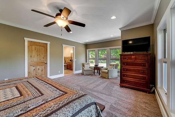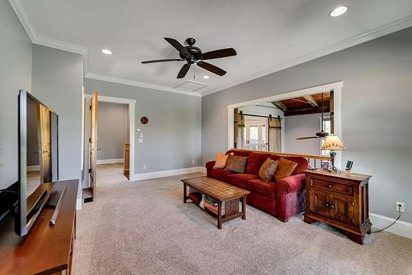 - Bonus Room, Breakfast Bar, Cathedral/Vaulted Ceiling, Ceiling Fan(s), Kitchen Island, Large Master Bedroom, Living/Dining Room, Main Level Living, Open Floorplan, Primary On Main Level, Soaking Tub, Walk-In Closet(s)