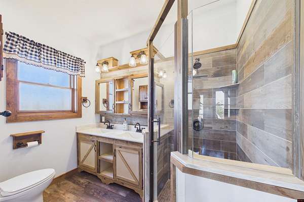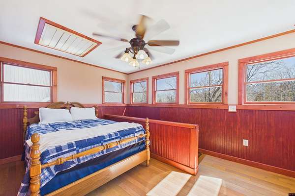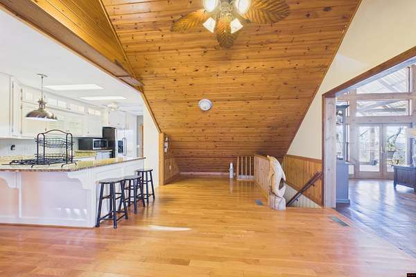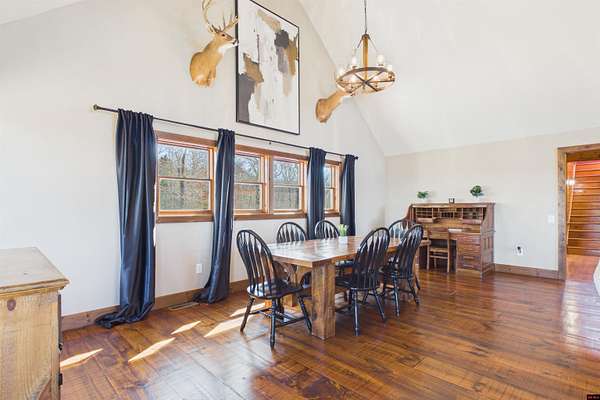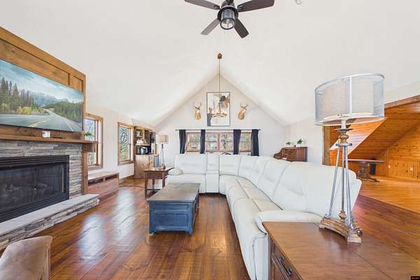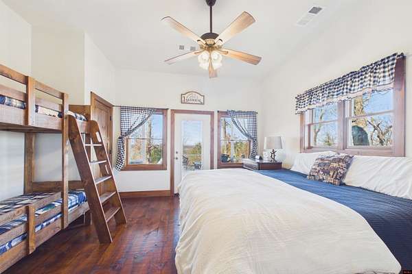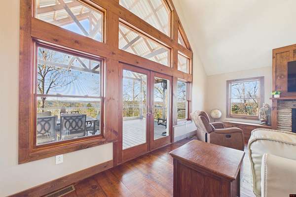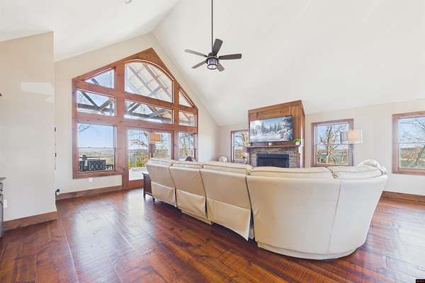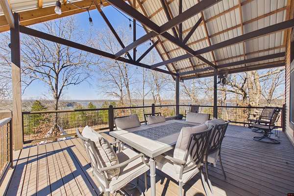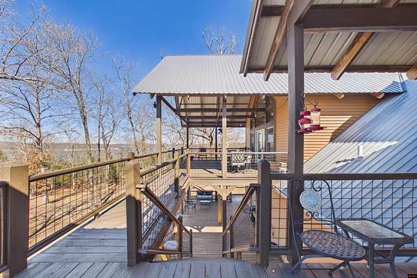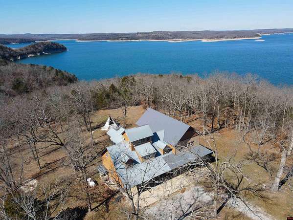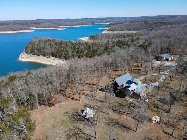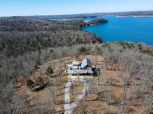 Wake up to beautiful Norfork Lake views every single day! This stunning custom-built 2,625 sq ft m/l home sits on 5 private acres m/l almost entirely surrounded by government strip, giving you unmatched privacy and direct access to nature. Inside, soaring vaulted ceilings, rich wood floors, and dramatic floor-to-ceiling windows flood the open floor plan with natural light. With 4 bedrooms (two are master suites), 3.5 baths, a dedicated office/den, and extra storage, there's space for everyone! Step onto the massive covered deck and take in the view--it's made for entertaining. The 3-car heated and cooled garage features a workshop and half bath, plus a 1,600+ sq ft outbuilding for all your boats, toys, and hobbies. Luxury, land, and lake views--this is the one.