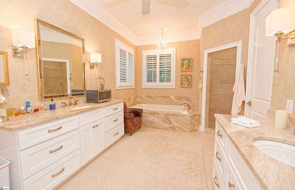 - Bookcase, Ceiling 9 ft+, Dual Primary Bedrooms, Open Floor Plan, Pantry – Walk in, Second Living Quarters, Split Floor Plan, Tub Garden, Walk in Closet