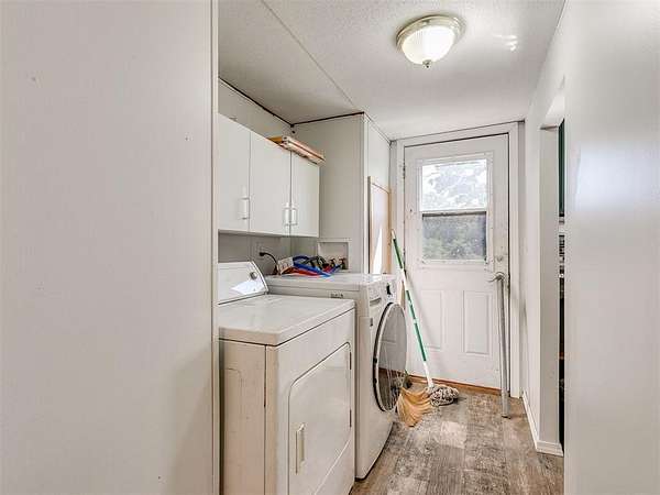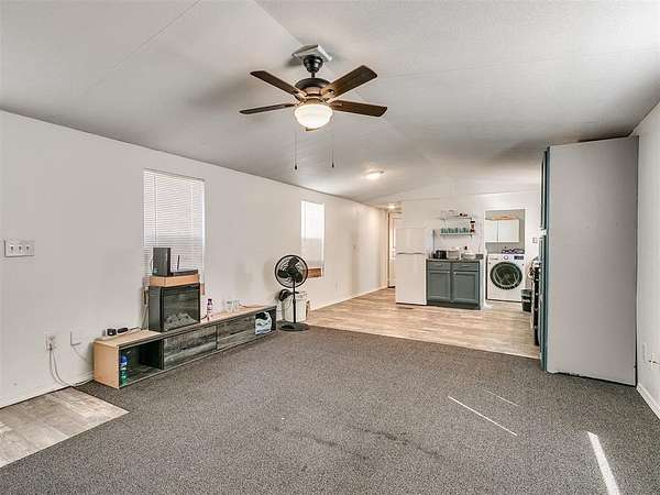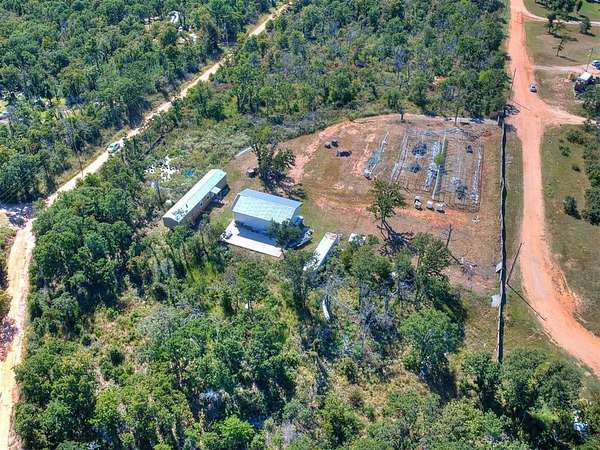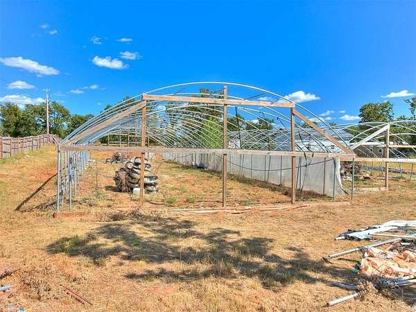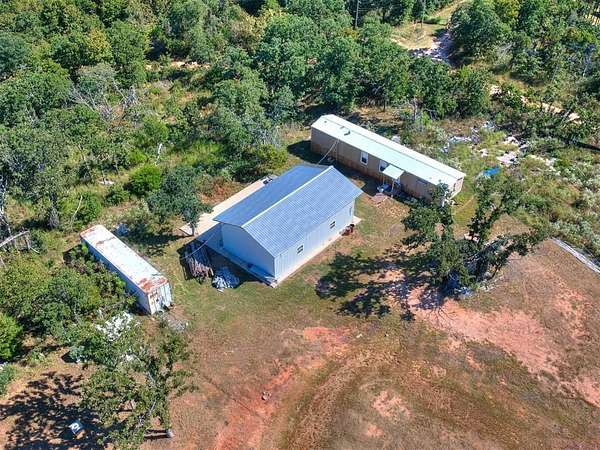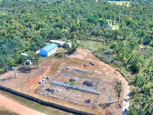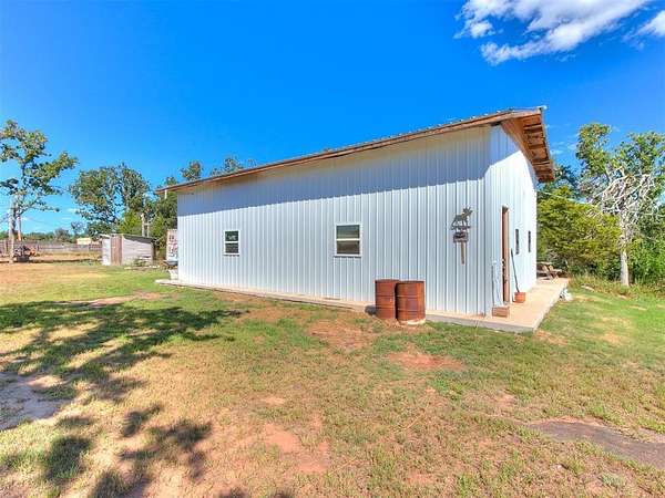 $0 DOWN PAYMENT FOR QUALIFIED BUYERS! YOUR BARNDOMINIUM IS AWAITING. There is currently a !000+ square foot high end shop, built on a concrete pad, with it's own well and water piped into building and it's own 400 AMP electrical box. Your New Barndominium needs a few touches to become your new Home! You own a private slice of Oklahoma countryside. This 3-bedroom, 2-bathroom manufactured home sits on a peaceful 4.96-acre lot close to Lake Thunderbird, blending rural tranquility with practical amenities and open space. A mix of wood-style flooring and carpet flooring throughout. A spacious kitchen offers generous cabinetry beautifully painted and room to cook, Large/utility room sits off the kitchen. Nice sized master suite, 2 additional bedrooms offer flexibility for an office, guest space, or storage. Step outside to your dream setup: A large metal shop with concrete pad-ideal for storage, workshop use, or small business needs. Three wells, underground utility transformer, and 3 power outlet panels are already in place. Fenced north boundary. Plenty of cleared land with mature trees for shade and privacy Whether you're looking to homestead, invest, or just escape to the countryside, this property has the infrastructure to grow with you. Enjoy boating, fishing, and hiking at Lake Thunderbird, all within minutes, while still being conveniently close to Norman and major highways. Bring your vision-this one has the bones, land, and location to make it all happen!