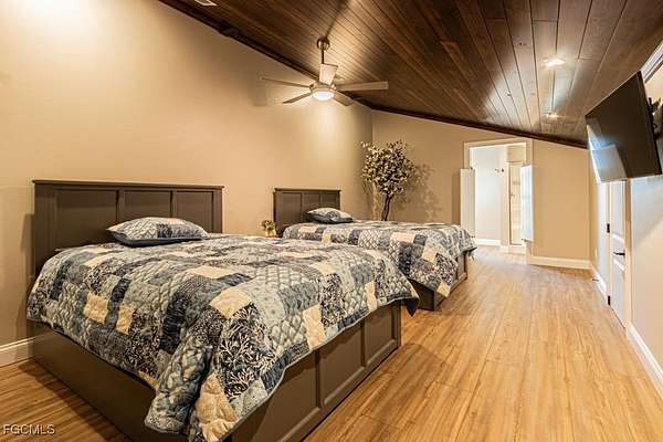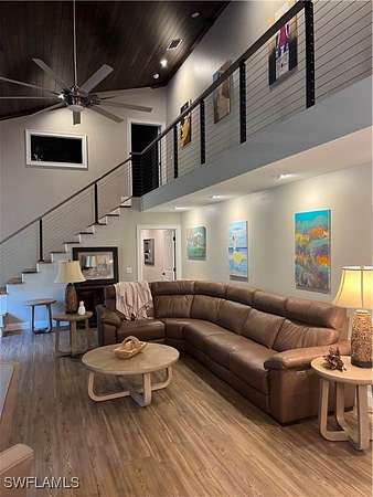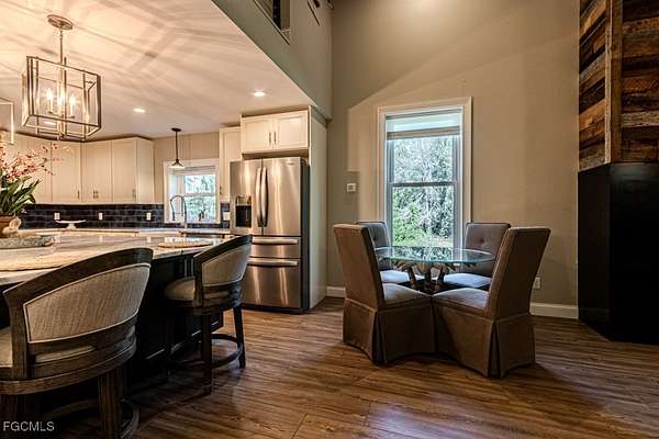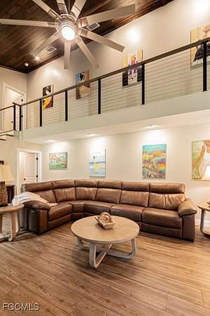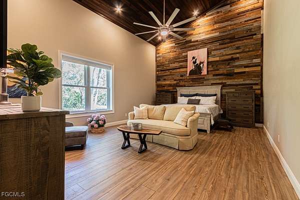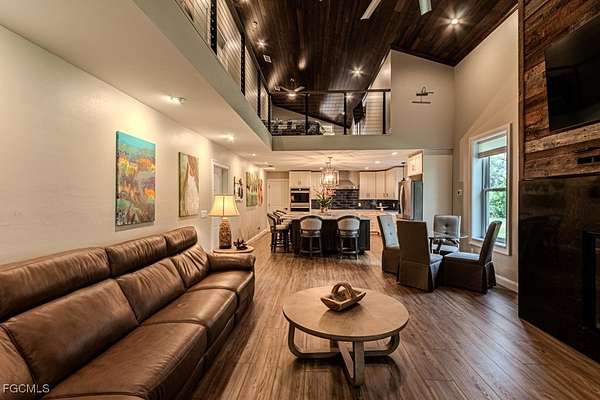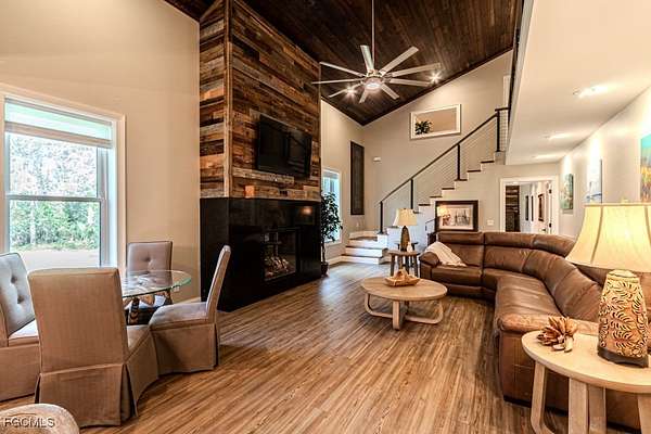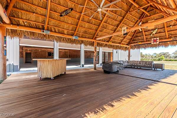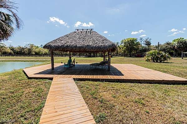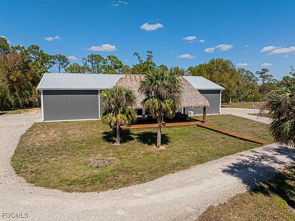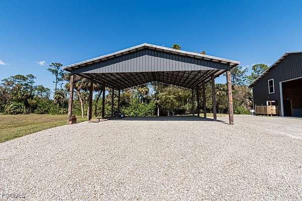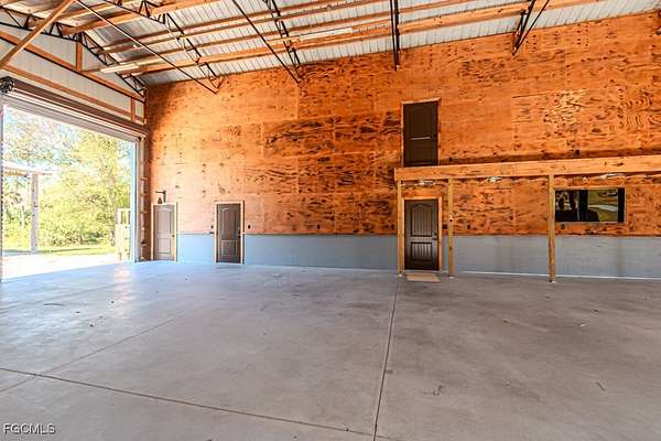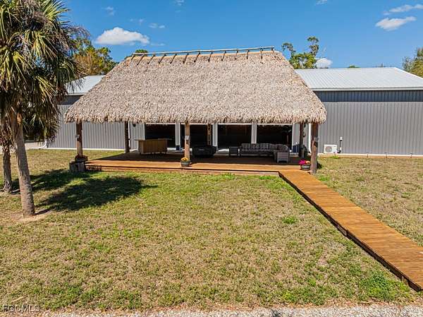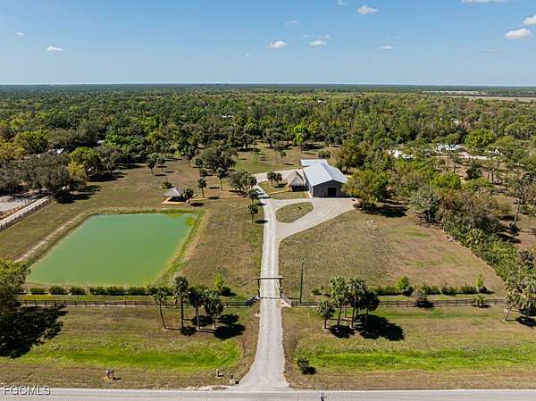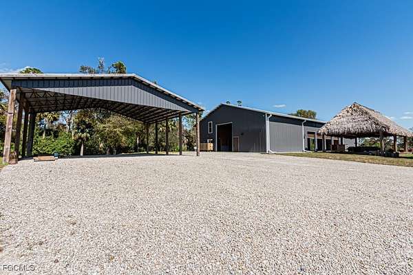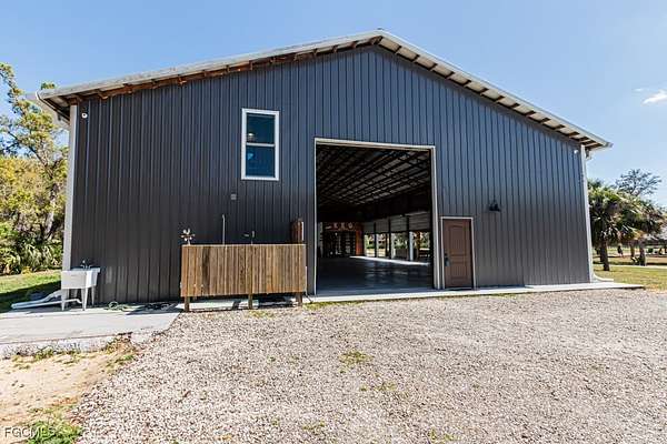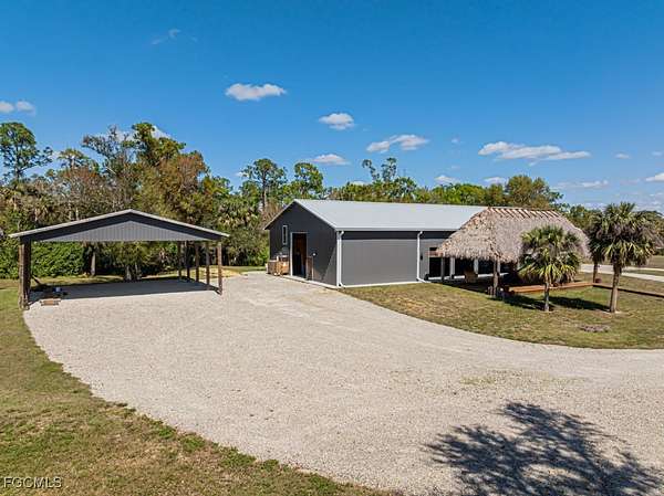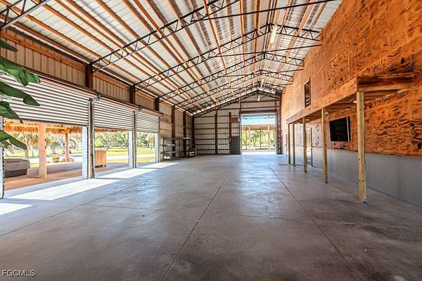 Unique Barndominium on ten acres with endless possibilities!! Zoned Ag-2 Residential. Come bring your imagination and create your own piece of paradise. Living area is approximately 3000sq ft, with an upstairs loft that offers two spacious bedrooms and a full bath. The Kitchen has a massive granite island that seats 16 plus comfortably, a farm style sink, stainless steel appliances. The inside laundry has built in cabinets, stained butcher block counter tops even entry from the garage. Beautiful tongue and groove wood ceilings, electric fireplace in great room finished with reclaimed barn siding. With an x- large master suite that offers a huge well-lit walk-in closet, boasts of storage and even a beautiful chandelier hangs over the packing table. Master bathroom has dual sinks, auto heated commode, oversized walk-in shower all tiled with a glass barn style door, brushed nickel dual shower fixtures. Each end of the garage area has 16 ft doors with auto openers, side of the building has four 12ft garage doors for easy access with manual lifts. Inside the garage there is a bonus room with a large closet, mini split and heat. Entertaining made easy on your choice of two wooden decks covered with one of two tiki huts where you can relax and enjoy majestic Florida sunsets, fish in the private pond or just get lost in your own private oasis. There is a separate 50-amp electric service great for an RV. Entire Property is fenced and well maintained! Make your appointment today and expect to be WOWED!