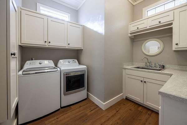 - Built-In Refrigerator, Dishwasher, Free-Standing Range, Gas Cooktop, Gas Range, Range, Range Hood, Stainless Steel Appliance(s), Washer/Dryer