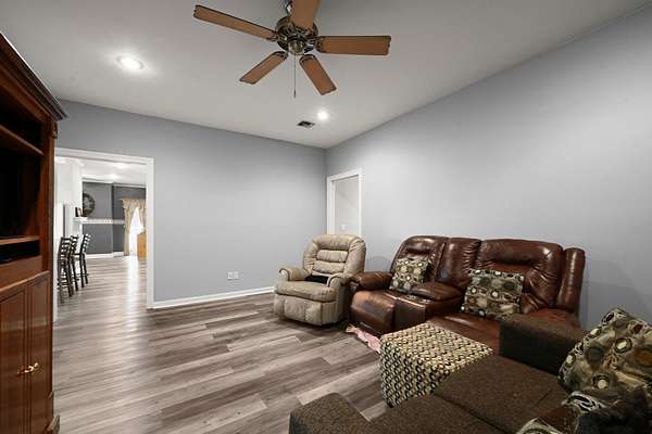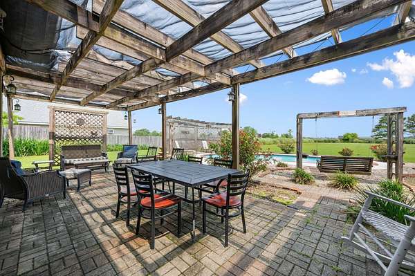 This lovingly maintained, one-owner property offers the perfect blend of comfort, functionality, and outdoor living. Situated on a generous lot, the expansive backyard is a private retreat featuring a sparkling inground pool with a new sand filter system, a pavered patio ideal for entertaining, and a large workshop with two covered bays. Both the home and shop have brand-new premium architectural shingle roofs-the highest rated for wind protection. Inside, you'll find a freshly painted interior with 9-10 ft ceilings, elegant crown molding in most rooms, and a thoughtful layout including a spacious living room, separate family room, formal dining, and a heated and cooled sunroom with floor-to-ceiling glass overlooking the pool and backyard. The remodeled kitchen showcases granite countertops, freshly painted cabinets, and updated finishes. All flooring has been upgraded-carpet in the bedrooms, luxury vinyl plank, and ceramic tile throughout the rest of the home. Additional highlights include a new fireplace surround, one brand-new AC unit, and large, light-filled rooms. The property is fully fenced for privacy, with an automatic wrought iron gate securing the driveway. Its prime location offers easy access to Thibodaux, Baton Rouge, and New Orleans. Contact your REALTOR(R) today to schedule a private showing of this rare find!