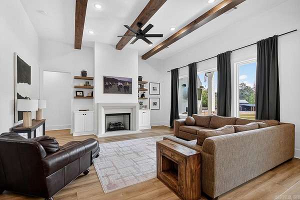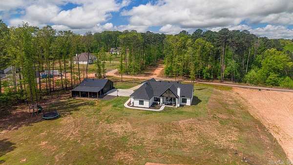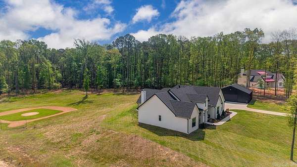 Nestled on 4.52 acres, this almost-new construction home truly has it all. From the moment you pull in, it just feels right. Offering 4 bedrooms plus an office & bonus/theater room, along with 3.5 baths, there’s space for everyone & then some. The entry welcomes you into a light, open layout with a dedicated office featuring floor-to-ceiling built-ins. The living room impresses with 12-ft ceilings, wood beams, & a cast stone gas fireplace. The kitchen is a showstopper—stained island, quartz countertops, floor-to-ceiling cabinetry with custom features, oversized fridge/freezer, & a huge pantry. The primary suite is spacious with room for a sitting area, leading into a large walk-in closet, plus a full tile shower & soaking tub. You’ll also find a safe room for peace of mind. The split floor plan offers three additional bedrooms, including a private suite & a shared bath, all with walk-in closets. Upstairs, enjoy a theater room complete with projector. Outside, the 40x40 shop with lean to with living quarters (kitchenette, bedroom, full bath) adds endless possibilities. Relax on the back patio, including gas starter FP, overlooking your very own baseball field—this one is a must-see!