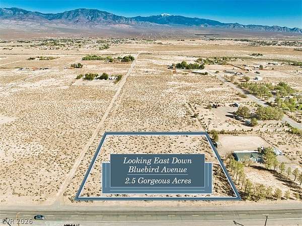 Nicely Nestled Near The Base Of Shadow Mountain Is Where You'll Find 1971 W. Bluebird Avenue~~~This Fabulous 2.5 Acre Parcel Offers A Fantastic Corner Position, Allowing You To Access Your Property Via Leslie St. Or Bluebird Ave.~~~Located In Northern Pahrump, Less Than 15 Minutes To The Center Of Town & Splendidly Situated In A Beautiful Area With Larger Sized Parcels, Wide Open Spaces & Spectacular Mountain Views~~~Power Is Already At The Property Line & (As With Most Pahrump Acreage) It Is Zoned For Private Well & Septic With Water Rights Being Required~~~Ask About Lenders That Are Now Offering Land Loans With 20% Down & Monthly Payments~~~You'll Have Amazing Sunsets & More Than 100,000 Square Feet To Work With On This Exceptional 2.5 Acre Parcel~~~Priced Great At Less Than 20k An Acre & Packed With Potential, Make This The Place For Your Pahrump Plans Today!