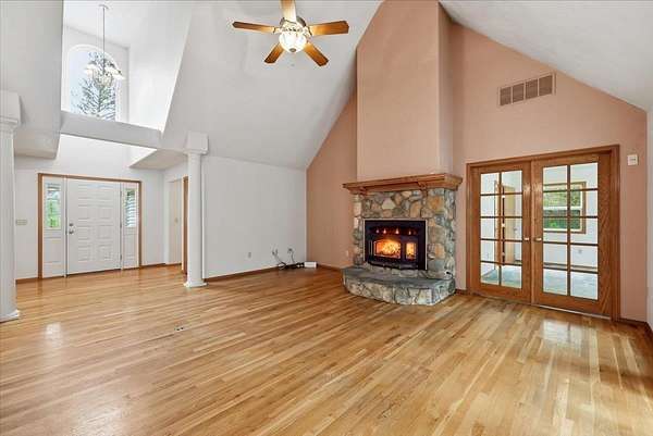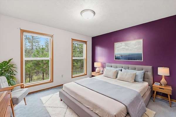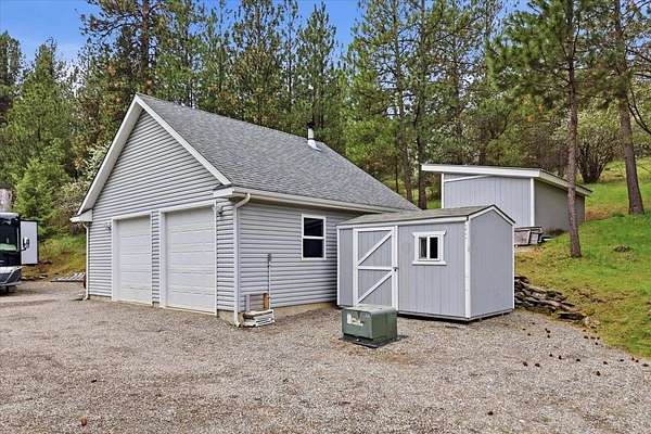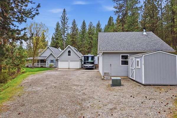 Tucked away on 5 pristine, tree-filled acres, this private retreat offers the perfect blend of luxury, space, and pacific northwest beauty. Enjoy breathtaking Mica Peak views from this serene property designed for both relaxation and adventure. Inside, soaring cathedral ceilings, rich hardwood floors, and a warm stone-accented wood-burning fireplace create an inviting great room. The bright, open kitchen features an eating bar and seamless flow for entertaining. A main floor sunroom with French doors brings the outdoors in, while the spacious primary suite offers a spa-inspired en-suite with jetted tub, separate shower, and comfort-focused design. Bonus room over the 2-car garage adds flexibility for office, gym, or guest space. Outside, a 25x30 shop with wood stove, 3 storage sheds, fenced garden, and covered front porch complete this lifestyle property. Close to Liberty Lake, hiking trails, and Mica Moon Zipline - your private escape awaits.