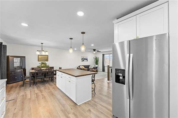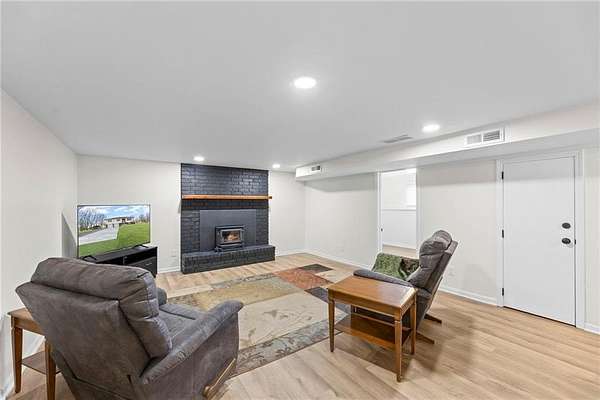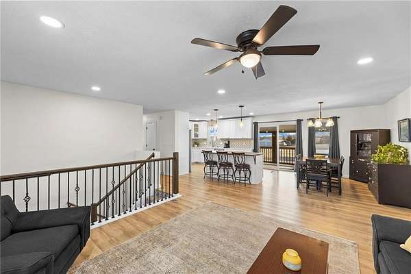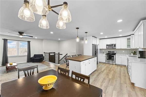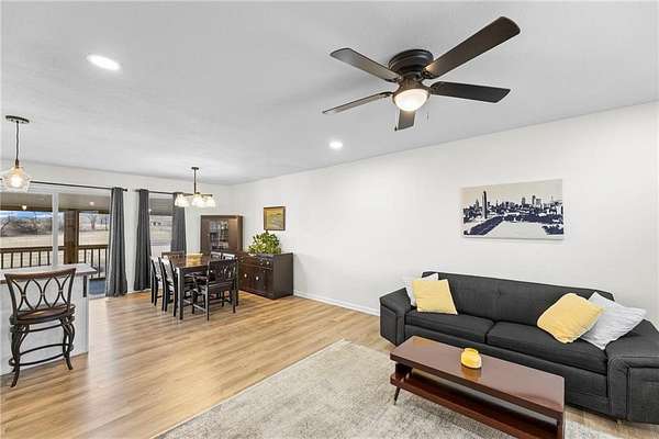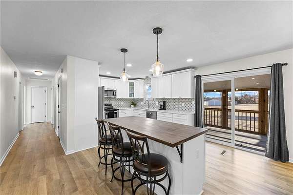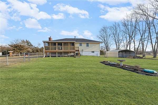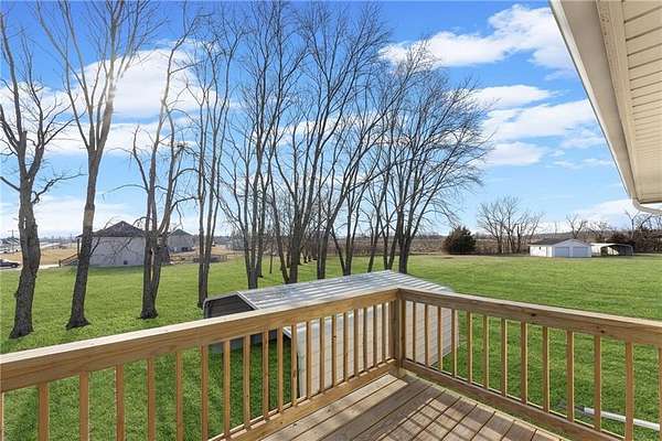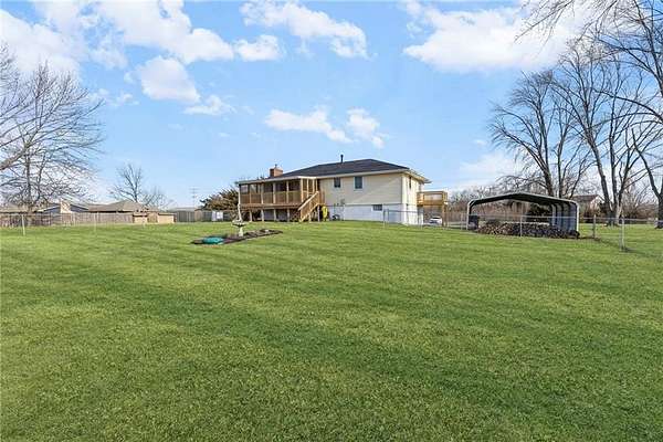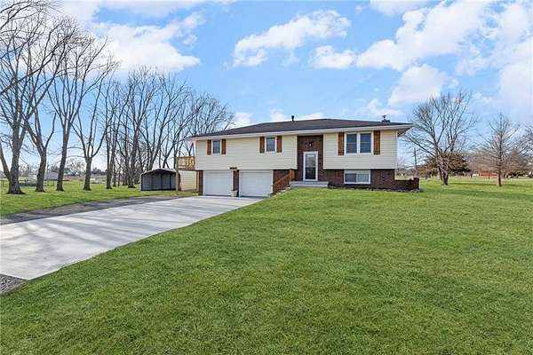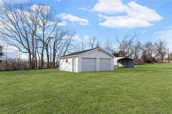 Enjoy the perfect blend of country charm and city convenience with this beautifully updated 4-bedroom, 2-bath home situated on 1.7 scenic acres. Step inside to discover a home that is brand new from top to bottom with waterproof LVP flooring, custom lighting and fixtures throughout. An open-concept floor plan with an expansive main-level redesign to the kitchen, dining and living area. Kitchen has been completely updated with new cabinetry quartz countertops, cabinet-based island and stainless appliances. Adjacent to the kitchen, a new dining room sliding glass door provides access to a reconstructed 10x24 covered screened deck. Value-add upgrades have been done including two new bathrooms, and all freshly interior paint. Complete install of a class 4 roof and gutters (2026) on home and detached garage. Both storm and entry exterior doors and garage doors were replaced in 2025. Outside, an additional detached 24x24 concrete floor garage and second carport 18X21 provide excellent space for additional vehicles, RV, boats and equipment. Located minutes from I-435 and I-70 you can enjoy the serenity of suburban living while staying close to outdoor recreation and city conveniences.