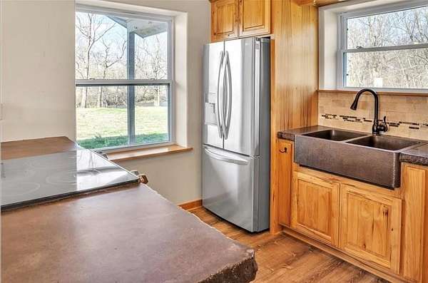 - Blinds, Ceiling Fans, Concrete Counters, Led Lighting, Programmable Thermostat, Smoke Detector, Woodstove