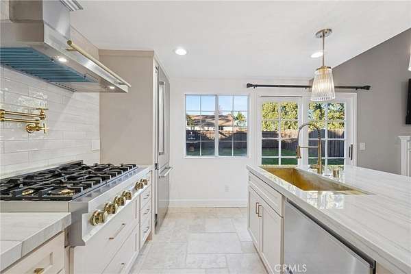 This stunning modern masterpiece blends sophisticated design with timeless elegance. Step inside to rich, dark Lamanite hardwood floors that flow seamlessly throughout the entire main level, perfectly complemented by soft gray walls and crisp 5-inch baseboards. The chef's kitchen is a showpiece featuring neutral large-format tile flooring, classic subway tile backsplash, premium Z-Line appliances, a striking gold faucet and sink and luxurious quartzite countertops that elevate everyday living. A dramatic downstairs powder bath impresses with bold black-and-white tiled accent wall and a sculptural concrete illusion sink. Upstairs, laminate wood flooring in all three bedrooms, including the serene primary suite. The shared hall bath offers sleek gray tile floors, a crisp white vanity, and modern matte black accents, while the spa-like primary bath continues the high-contrast theme with black-and-white tile, a spacious double vanity, and chic black fixtures. Every detail has been thoughtfully curated--this home effortlessly combines on-trend style with warm, welcoming comfort. A rare find that feels both luxurious and livable. Amazing HOA amenities include tennis courts, playground, pool and spa.