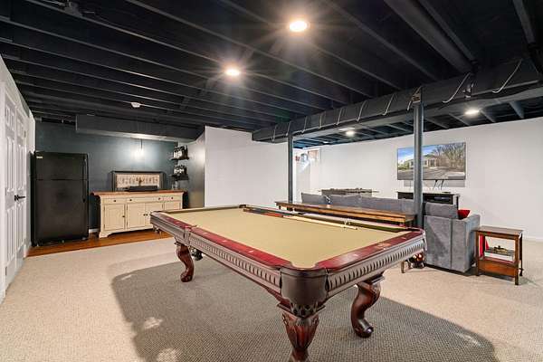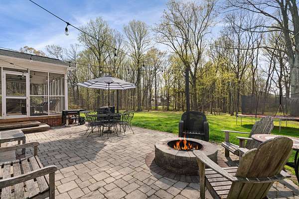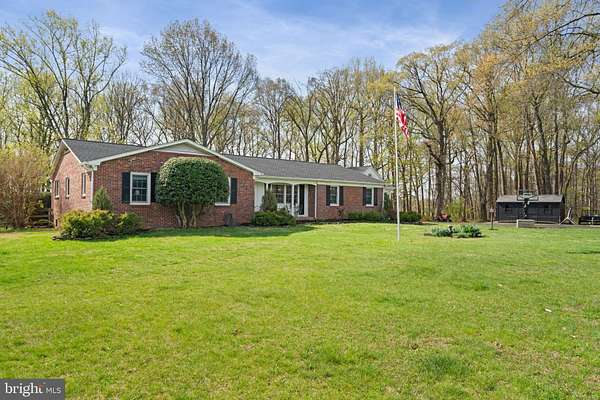 Nestled on a sprawling 3-acre lot, this exquisite ranch-style residence offers a harmonious blend of luxury and comfort, perfect for those seeking an elevated lifestyle. Meticulously maintained and upgraded, the home boasts a timeless brick exterior that exudes charm and durability. Step inside to discover a thoughtfully designed interior, featuring a seamless open floor plan that invites natural light to dance across the hardwood and luxury vinyl plank flooring. The heart of the home is the country-style kitchen, equipped with stainless steel appliances, breakfast bar, and brick accents. The upgraded countertops and ample pantry space enhance both functionality and style. The living area is a warm gathering space, highlighted by two elegant fireplaces - one wood stove in the living room and one electric in the large family room addition. The combination dining/living area is perfect for entertaining. Retreat to the primary suite, where you'll find a luxurious upgraded bathroom featuring a rain shower, tile flooring, and shiplap accents, along with a generous walk-in closet. Three additional bedrooms provide ample space for guests or a home office, ensuring versatility for your lifestyle needs. The basement boasts a large rec room with attached bar, tons of storage, a bonus room/den, full bath with shower, and a cozy office. The outdoor space is equally impressive, with beautifully landscaped grounds that back to serene wooded areas, offering privacy and tranquility. The large rear yard is fully fenced. Enjoy the fresh air on the screened porch or firepit on the stone patio, perfect for morning coffee or evening relaxation. The property also features a huge detached garage with additional storage space, along with a shed for all your yard care needs. Additional highlights include recessed lighting, crown moldings, multiple built-in's, and exposed beams that add character and warmth throughout the home. The laundry facilities are conveniently located on the main floor, making daily chores a breeze. With its blend of luxury features and serene surroundings, it offers a unique opportunity to enjoy both comfort and elegance in a private setting. Experience the perfect balance of indoor and outdoor living in this exceptional residence.