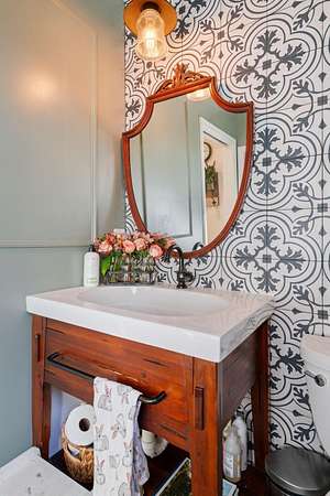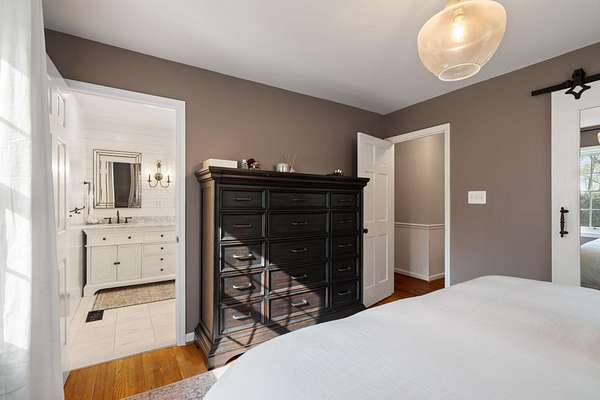 - Attic, Bar, Built-Ins, Carpet, Ceiling Fan(s), Chair Railings, Combination Dining/Living, Country Kitchen, Crown Moldings, Entry Level Bedroom, Exposed Beams, Open Floor Plan, Pantry, Primary Bath(s), Recessed Lighting, Stall Shower Bathroom, Store/Office, Tub Shower Bathroom, Upgraded Countertops, Wainscotting, Walk-In Closet(s), Wet/Dry Bar, Window Treatments, Wood Floors, Wood Stove