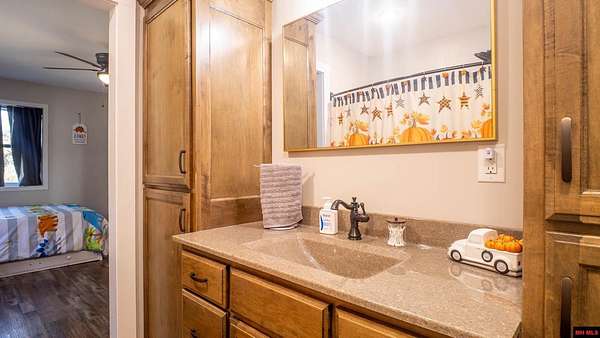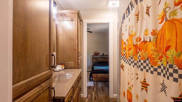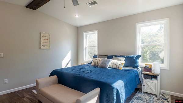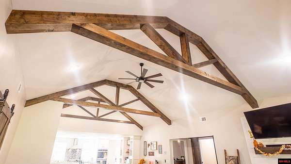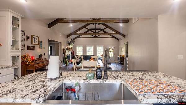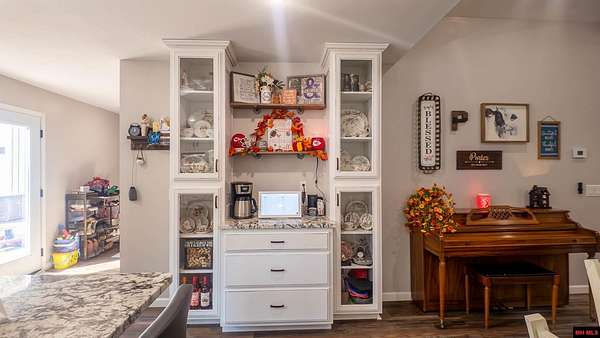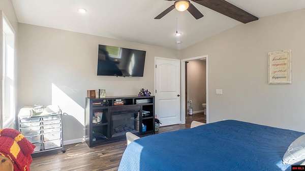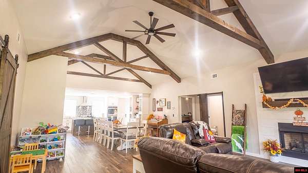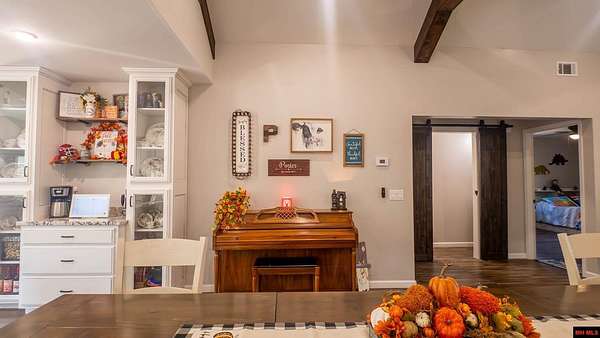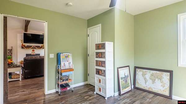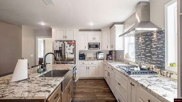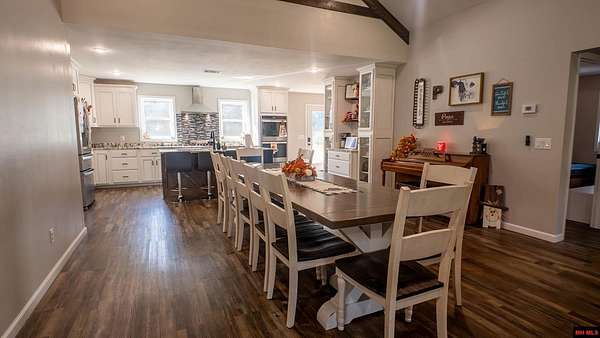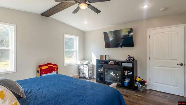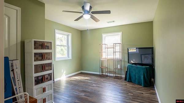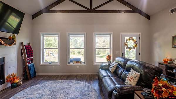Hobby Farm in the Ozarks Experience peaceful Ozarks living in this 4 bedroom, 2.5 bath country home built in 2022 on about 11 wooded ac m/l. Designed for comfort and the outdoor lifestyle, it pairs modern features with rural charm. Inside, the open layout features vaulted ceilings, LVP flooring, and handmade wood kitchen cabinets with granite. Dual fuel central HVAC and cellulose insulation provide year round efficiency. The primary closet doubles as a storm shelter with 6 inch concrete and a commercial grade fireproof door. Relax on the covered front porch and watch deer and wildlife. The mostly wooded acreage offers privacy, whitetail hunting, and quiet exploring down a private drive with no visible neighbors. A 40x60 steel framed shop and garage adds 2,400 sq ft for storage or a workshop; a 12x12 bathroom is already plumbed. Whether you want a hobby farm, a hunting retreat, or a serene escape near town amenities, this property delivers comfort, seclusion, and classic Ozarks living.