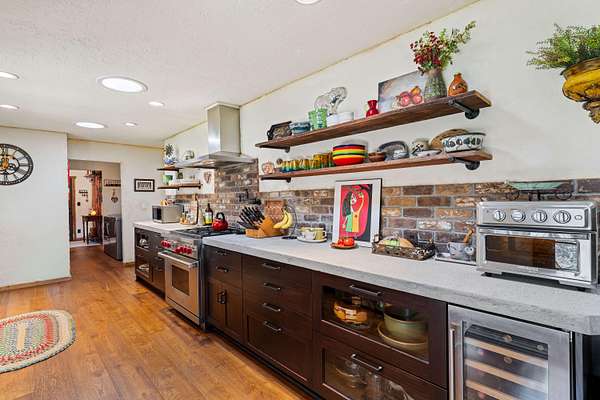 - Dishwasher, Disposal, Dryer, Oven, Range, Range Hood, Refrigerator, Washer, Water Heater, Wine Refrigerator