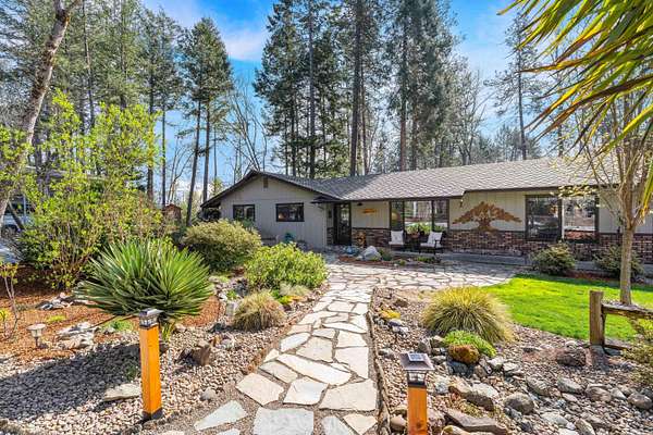 Exquisite, elegant ranch-style home on 1.75 acres in the desirable Redwood area! Located at the end of a quiet cul-de-sac with space between neighbors and just minutes from downtown, this property offers privacy and charm. Spacious updated kitchen featuring cement countertops, soft-close cabinetry, wine fridge, and a 36-inch dual-fuel gas Wolf range. New French oak hardwood flooring. Updated primary bathroom with Jacuzzi tub. Flexible bonus room could serve as a 4th bedroom or office. Outdoor living shines with a gorgeous deck and outdoor kitchen. Just down the steps, enjoy a new hot tub on its own pad. Surrounded by nature and a beautiful tree line, the terraced backyard includes raised garden beds, patio space, and room for recreation. Two-car garage with workshop space, covered RV hookups with water and electric, landscaped grounds irrigated by GPID, and ample parking. Come see to believe!