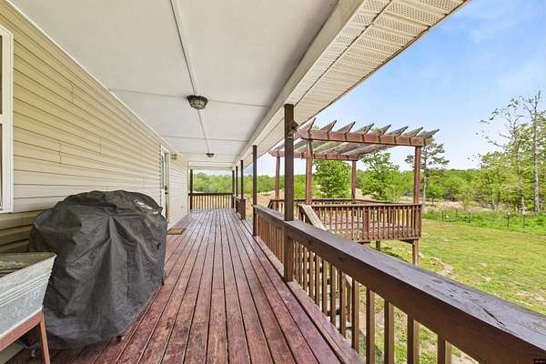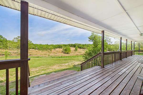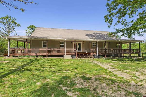 Nestled in a serene and private setting in Salem, AR this expansive 5-bedroom, 2 full bath, and 2 half bath home offers a peaceful retreat on 14 unrestricted AC M/L. This gorgeous property has 2 AC M/L of pasture/hay lands, a spring fed pond and plenty of woods to hunt and play in. Gorgeous country home boasting 3,696 square feet of living space, a durable metal roof, and a HUGE wrap-around porch. The home includes a detached garage with an overhang, ideal for additional storage or workspace. Inside, you'll find a huge country kitchen with lots of cabinet and counter space, a butcher block island and a large dining area. Large master suite, jetted tub, his & her closets and a split bedroom plan. The upstairs area has over 1400 square feet of space with a half bath making this home perfect for a large family or those who love to entertain!