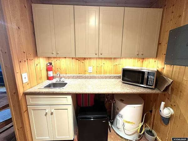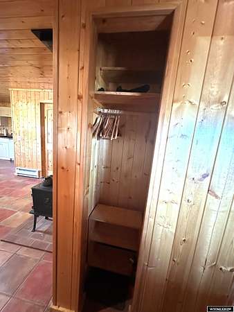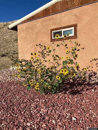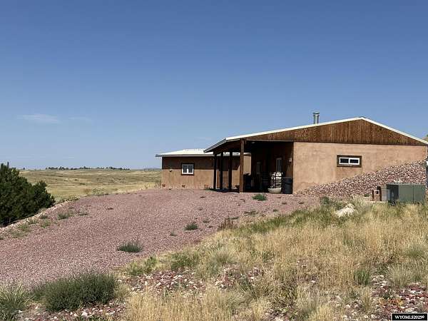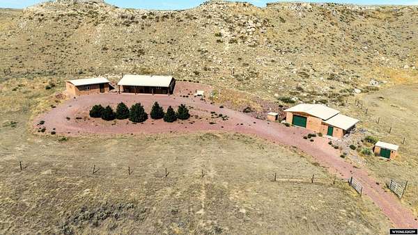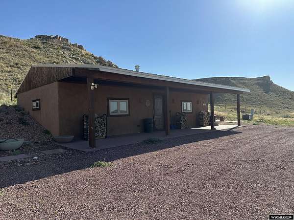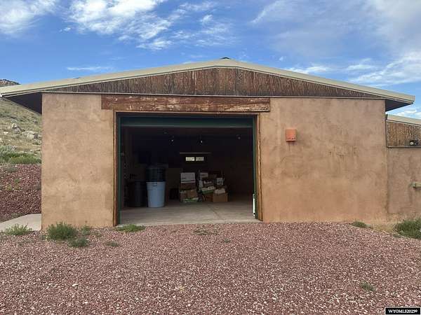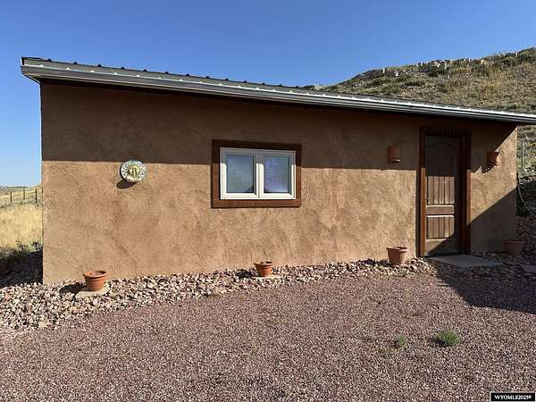 Discover a truly unique Wyoming property nestled into the side of a hill, offering exceptional privacy, panoramic views, and unmatched tranquility under the vast Wyoming night skies. This 70-acre fully fenced and cross-fenced estate features both pastureland and rugged terrain, ideal for those seeking a blend of open space and natural character. Enter through gated access points and auto gates, offering security and ease of use. The main residence is a 740 sq ft 1 bed / 1 bath cinder block home with cozy, rustic charm. Inside, tongue-and-groove pine walls add warmth and character, while insulation and the earth-sheltered design keep it efficient and comfortable year-round. A separate 425 sq ft Casita--also constructed of durable cinder block--offers a versatile open studio layout with its own bathroom. Perfect for guests, rental income, or a private workspace. Additional features include: A single-car garage with extra space and shelving for workshop needs. An additional storage shed for equipment or supplies. Fully fenced and cross-fenced property, ready for animals or agricultural use. Sweeping views and star-filled skies that only Wyoming can deliver. Whether you're looking for a sustainable homestead, a private retreat, or a base for adventure, this property delivers character, durability, and room to breathe.
