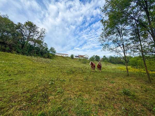 Introducing the Hilltop View Patriot Farm, a beautiful +/- 76 acre, Gallia County turn-key property in the heart of a thriving farming community! This spacious two-story home offers 8 bedrooms with room for expansion, 2.5 baths, a large basement, mudroom, and a beautifully designed layout for comfortable country living. The expansive kitchen is perfect for family gatherings and guests, while the concrete walkways, a charming back porch, and a screened-in porch add to the outdoor enjoyment. Step outside to enjoy an outdoor pavilion with a million-dollar view overlooking your very own horse pasture. The sunsets and sunrises here are truly something to see, and from the pavilion and back porches you'll enjoy plenty of wildlife sightings. On clear days, you may be able to see over a mile to the east. The farm is complete with a classic horse bank barn featuring a hay loft, numerous stalls, a concrete floor, quality fencing, multiple gates, and a generous overhang ideal for tractors, buggies, or vehicles. Additional improvements include a large garage with a work area, a convenient garden near the house, a storage shed, and even a playhouse for the little ones. The property sits on a quiet yet convenient road and offers a nice gravel drive for easy access. For outdoorsmen, this farm is also known for excellent deer hunting! The topography is rolling-to-hilly with wildlife openings, trails and great access. With multiple potential food plot areas, three elevated blinds, outstanding habitat, oaks, and well-laid-out access trails, it provides some of the best hunting opportunities in the region. The farm is +/- 25 minutes to Gallipolis and Oak Hill and +/- 30 minutes to Crown City and Jackson. The property is subject to a survey. All showings are by appointment only and NO Sunday showings. All showings require 48 hours notice and Proof of Funds or a pre-approval letter from a financial institution. If you have any questions or are interested in a private showing, please contact Brian Whitt at (937) 545-7764 or Josh Grant at (330) 341-0997 .